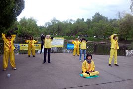 二零一一年五月十三日是第十二届世界法轮大法日。俄罗斯各地区都举行了不同形式的庆祝活动。莫斯科法轮功学员炼功洪法莫斯科法轮功学员表演舞