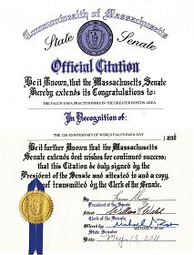 美国麻萨诸塞州州参议员麦可·拉什褒奖新英格兰法轮大法学会,祝贺第十二届世界法轮大法日。