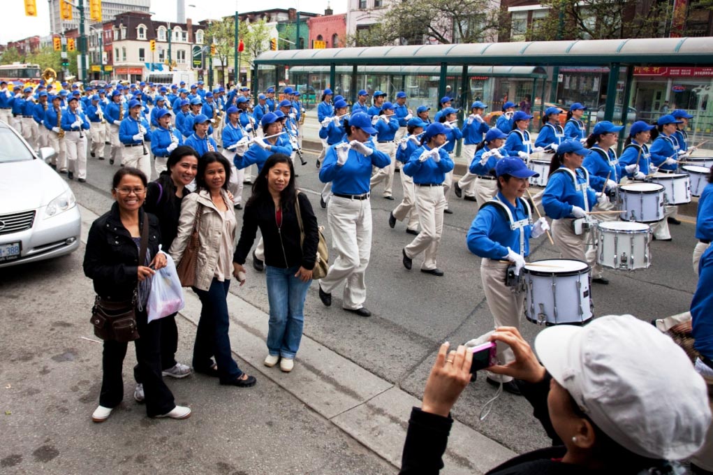 冯先生是越南华侨,他移民加拿大已有十五年,当天国乐团的队伍经过时,他脸上露出惊喜的表情。冯先生轻松的说出了队伍有几列几排,他表示,天国乐团的队伍很庞大很整齐,演奏的音乐很有力量、很震撼。他说,在西方国家看到这么多华裔面孔的游行队伍很高兴,感到中国人在国外很有力量。