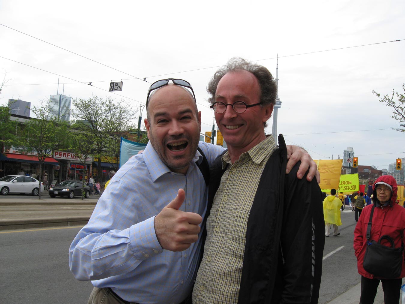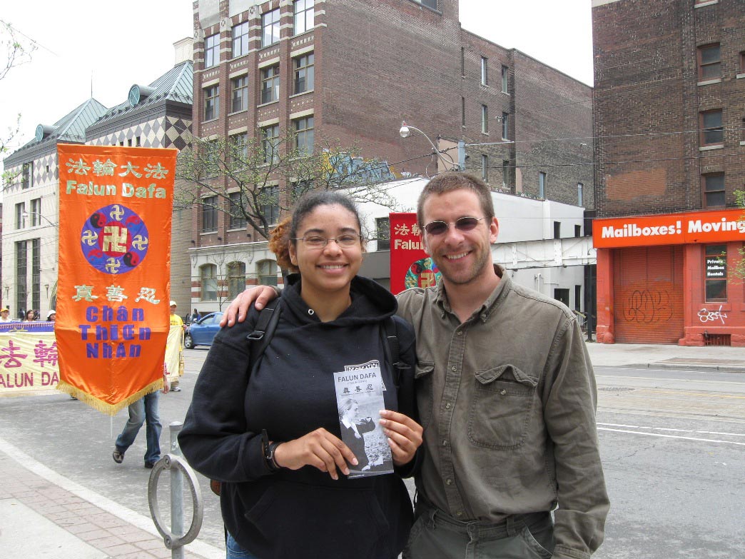 从青岛到多伦多近十年的王女士和以色列籍丈夫,抱着几个月大的女儿在观看游行。她说很认同法轮功,就是不明白中共为什么要迫害他们,“难道做一个好人也有罪吗?!很高兴今天看到这么壮观的队伍,我们全家都很高兴。”