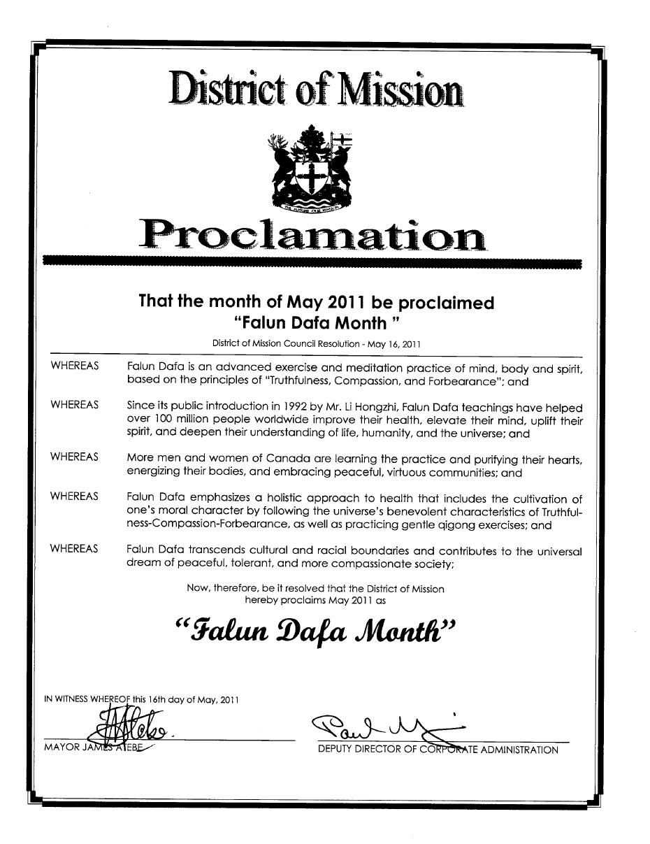 鉴于,越来越多的加拿大人加入修炼法轮大法的行列,净化心灵、强身健体,并为社区的和平与美好作贡献;并且