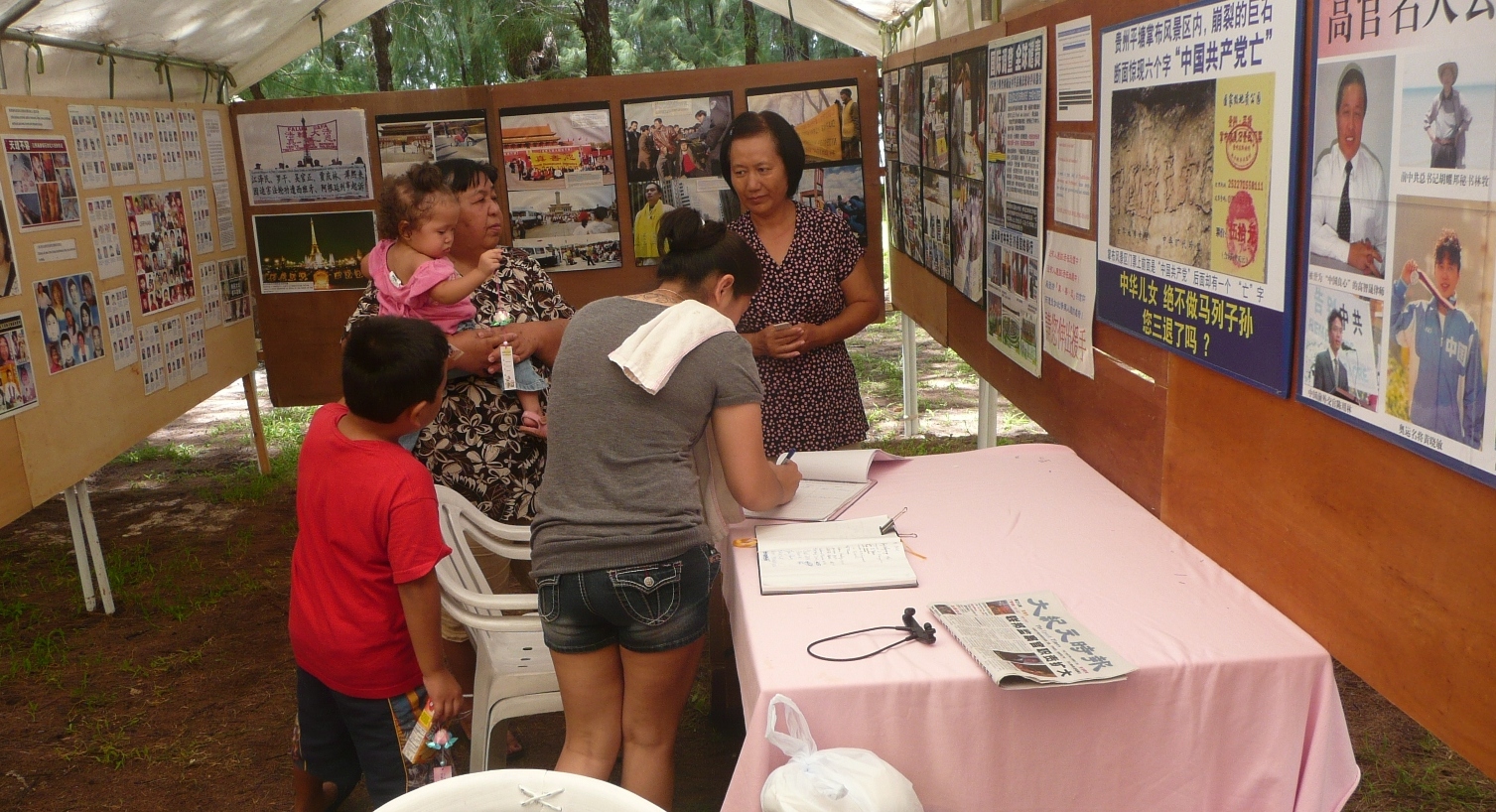 ![]() 塞班岛法轮大法佛学会在火树节活动设置的摊位 |