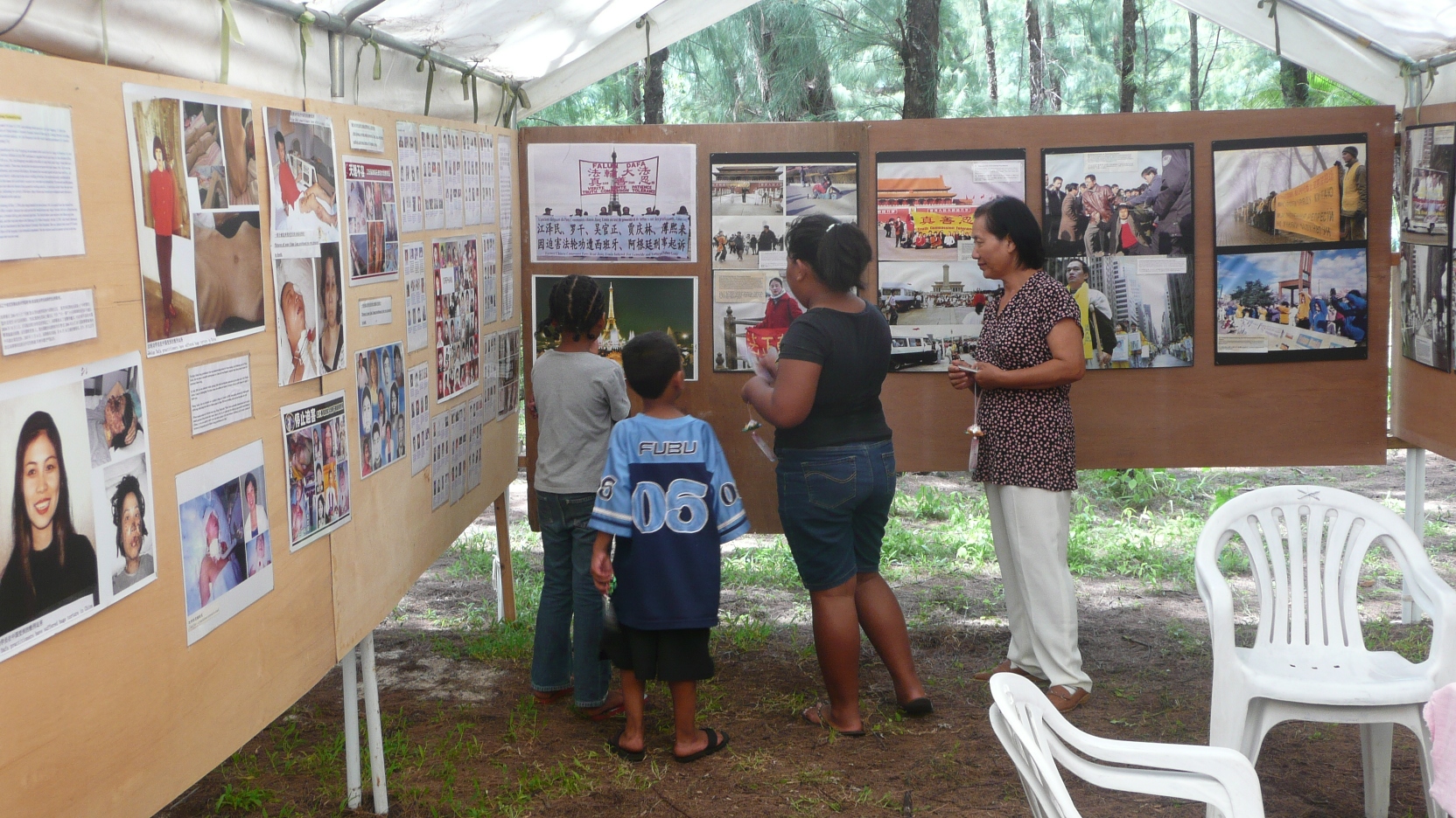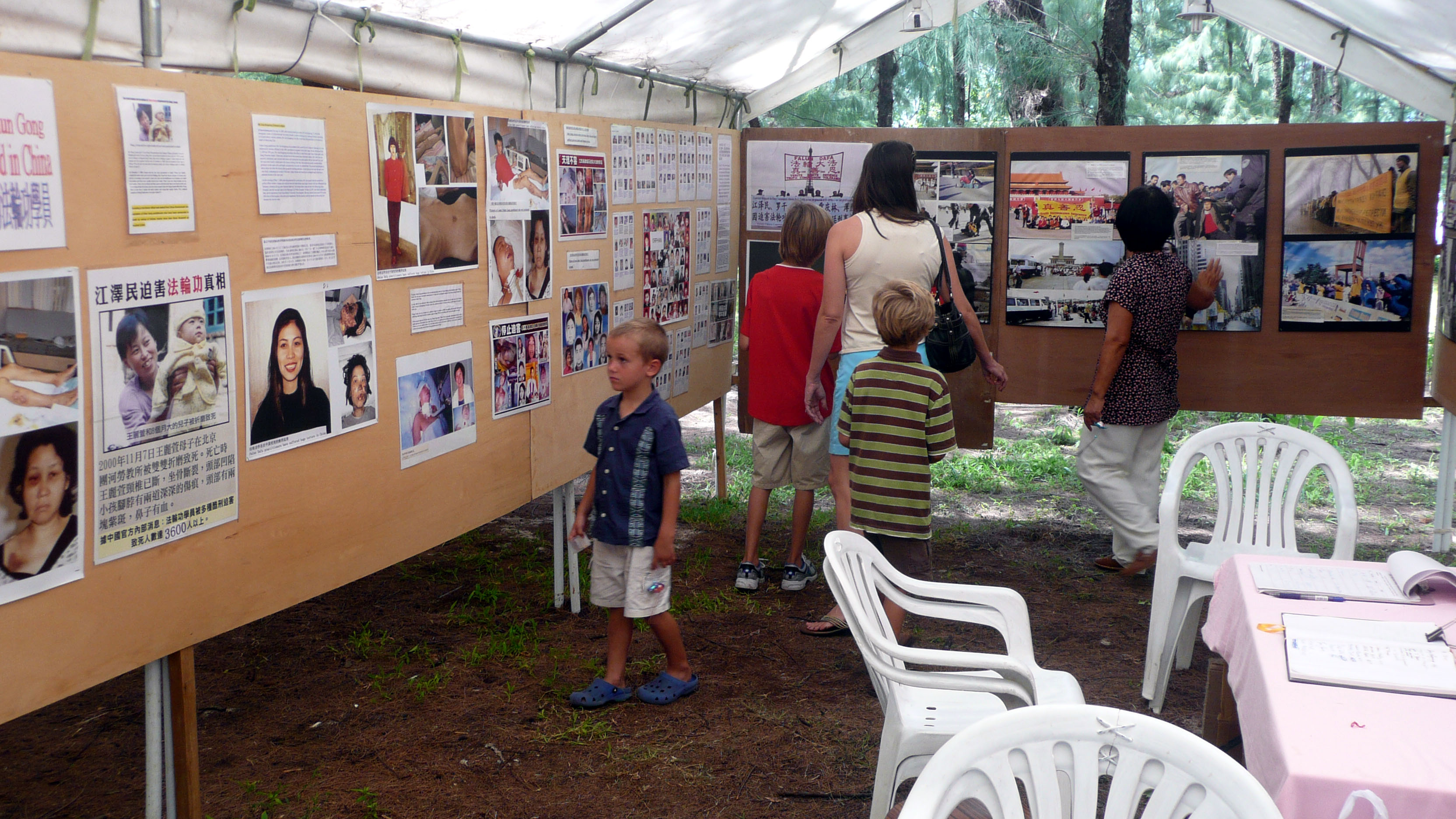 有一位律师,看完我们的真相展板后很震惊。并告诉我们的学员,如果我们在这里有什么困难,可以去找他,他愿意帮助我们。当地一位土著老太太,看到法轮大法弟子被迫害的图片时哭了,一直在抹着眼泪。一位小学生看了迫害部份的展板后,非常气愤。看到有许多人在呼吁停止迫害的征签簿上签名时,他也排着队在后面等待着签名。过了一会儿,他把他母亲也带来观看展板,看完后他拉着母亲的手,让她也在征签簿上签名。其中有一对母女,看完展板后说要给我们捐钱,我们谢绝后她问:“我能怎么样帮助你们呢?”学员问你要不要在反迫害征签簿上签名,她说:“要,我要。”接着就签上了她的名字。看到法轮功真相展位的人在明白真相后,纷纷在反迫害征签簿上签名,写下他们的正义之声,表示支持法轮功,要求结束这场惨无人道的迫害。