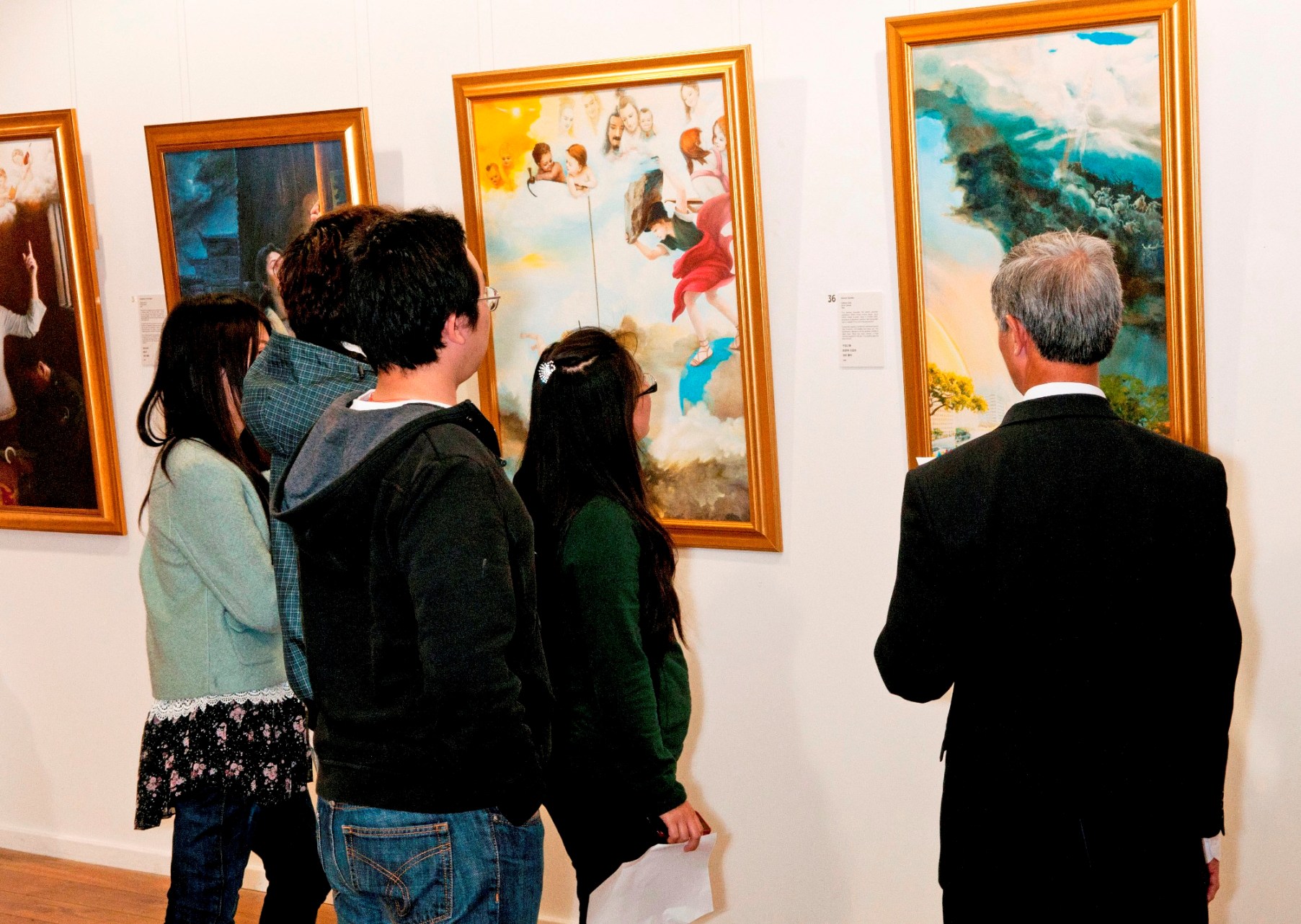 ![]() 认真阅读画作讲解的观众 |