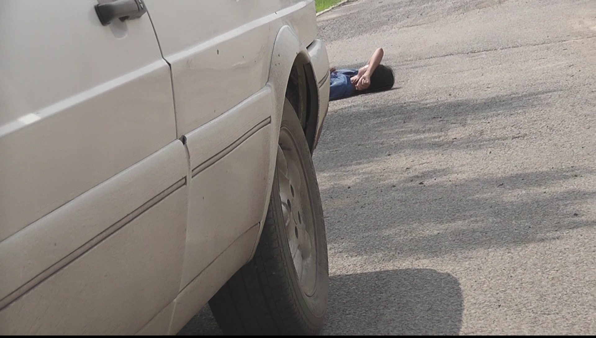 ![]() 金鑫妻子被警察推倒在地 | ![]() 挡在人前面的车的车牌 | ![]() 金鑫妻子被警察推倒在地 |