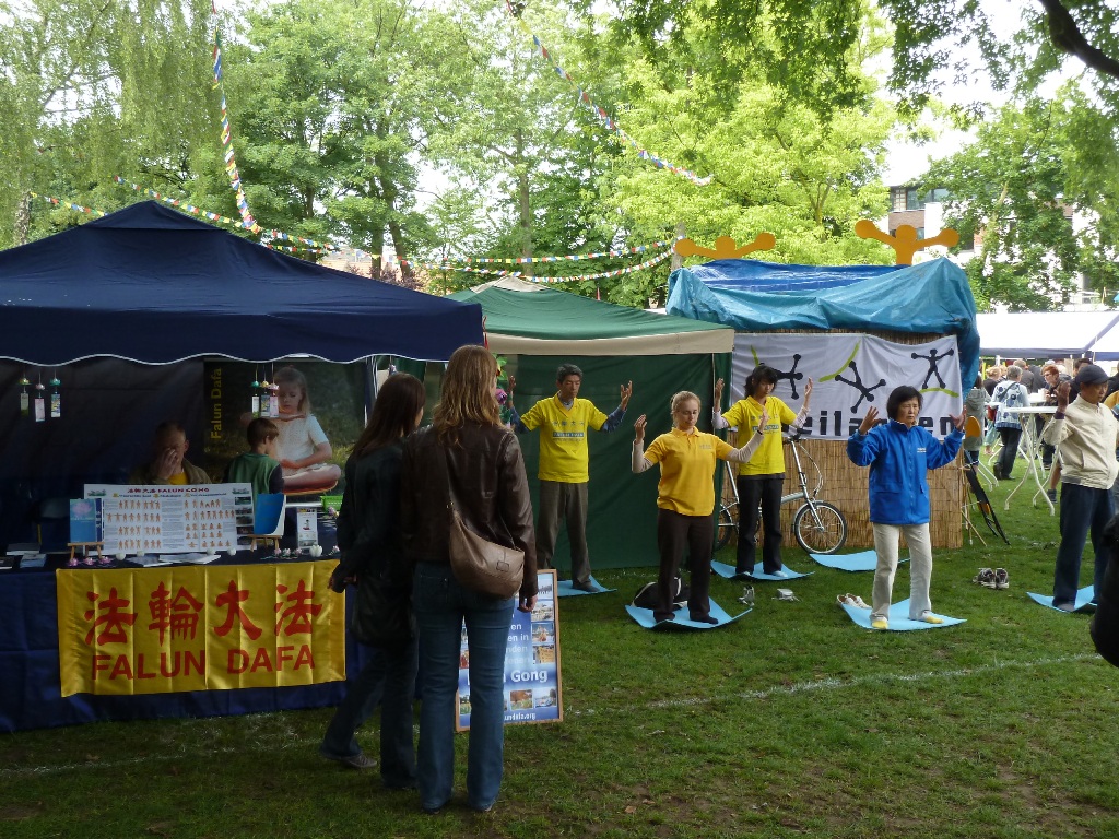 ![]() 梅赫伦市民卢卡斯(右二)在夏日节庆上学炼法轮功 |