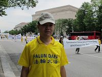 二零一一年七月十五日,在美国首都华盛顿DC举行的“解体中共,停止迫害法轮功”大游行队伍中,记者见到了二零零六年被联合国营救的、来自辽宁的法轮功学员郑治。
