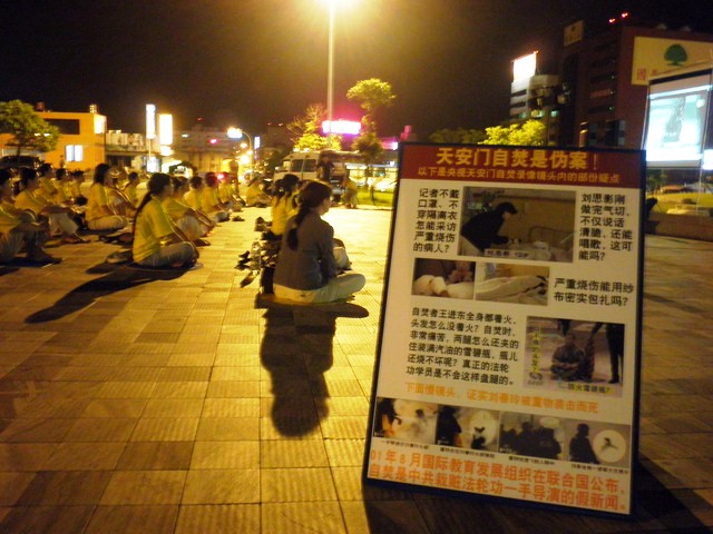 ![]() 法轮功学员在台湾花莲火车站前广场炼功 |