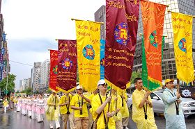 ![]() 二零一一年七月十七日午后,台湾北区法轮功学员举行“拯救善良停止迫害”大游行 |