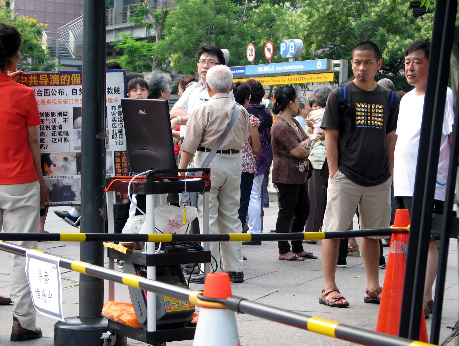 一零一大楼景点前的真相展板围着层层的中国游客争相了解事实、听学员讲真相