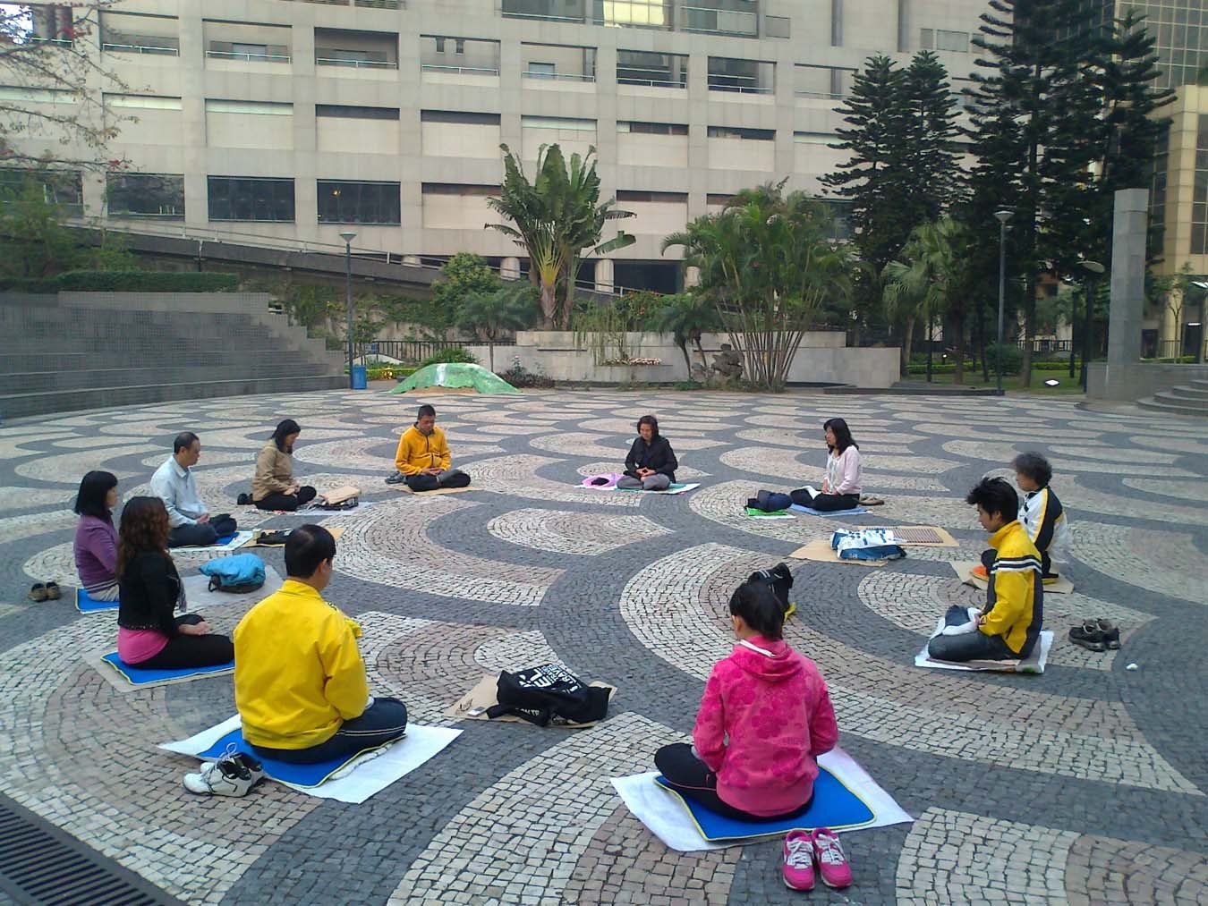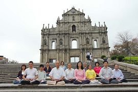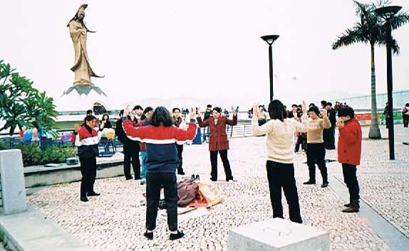 ![]() 澳门回归一周年之际,二零零零年十二月二十日,澳门法轮功学员集体炼功 |