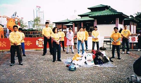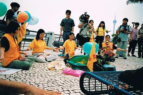 ![]() 二零零一年五月十三日,澳门法轮功学员炼功洪法 |