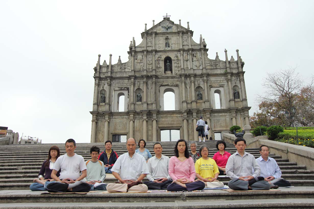 ![]() 澳门的不同地方都留下法轮功学员炼功的身影 |