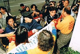 ![]() 一九九九年七月二十二日,澳门法轮功学员召开记者招待会反迫害 |