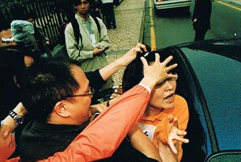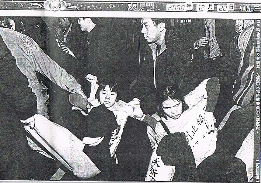 ![]() 江泽民在澳门期间,警察非法抓捕抗议迫害的澳门法轮功学员 |