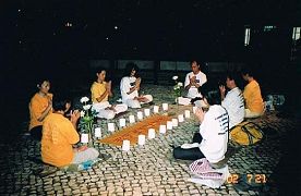 该日晚上学员举行烛光悼念会,纪念被中共迫害致死的法轮功学员。活动在距离“中联办”不远的海边公园内进行。警方派了七辆警车戒备,真如临大敌。学员们在军警、便衣、巡警三种警力的监备下,在肃穆、庄重、严峻的气氛中静静地炼完了神通加持法,和平结束活动。回家时很多学员与记者都被警察跟踪至家门口。后有记者风趣地讲:“跟着法轮功,我们的级别也提升了,政府也免费给我们配备了保镖护送回家”。