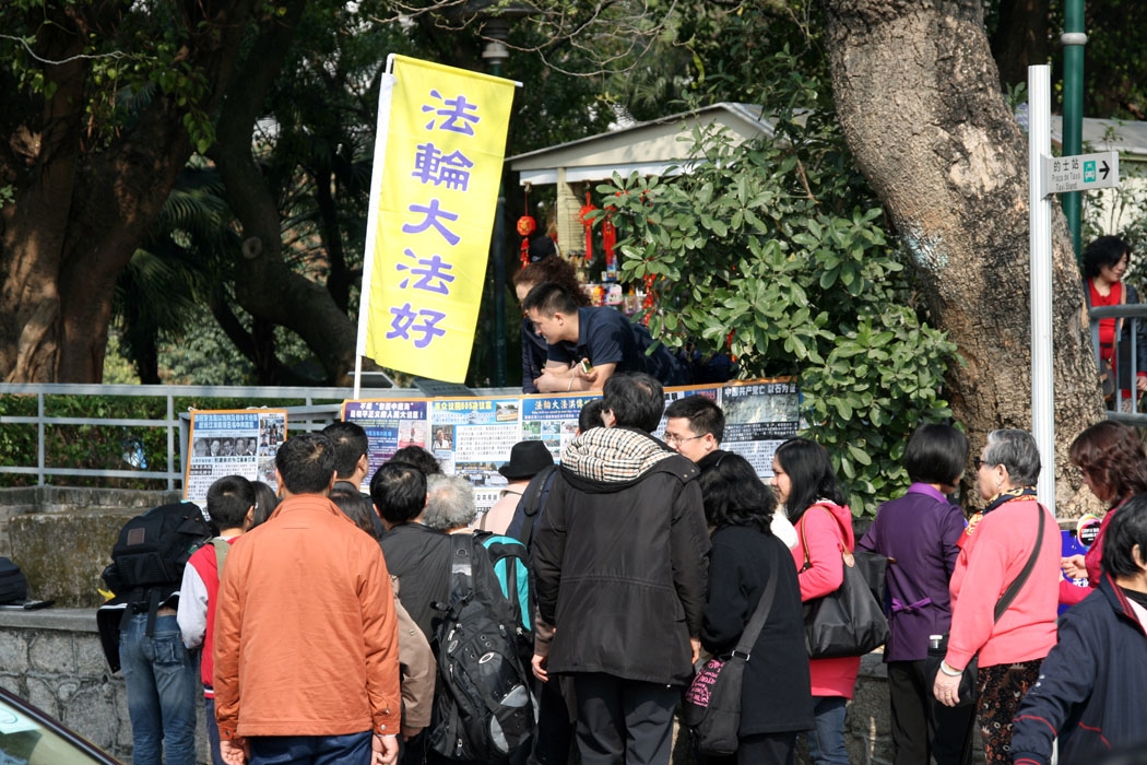 澳门每天有大量的大陆游客,这些人很多有地位,有财力,在大陆有一定的影响力。从二零零二年开始,法轮功学员在旅游点上讲真相,随后建立了讲真相点,挂放真相图片,又用小扩音设备播放迫害真相。每天成千上万的游客在法轮功学员面前经过,有的停留观看真相,有的竖起大拇指赞扬的,有的语重心长嘱咐:“你们要保重呀!要小心中共的报复呀!”有人鼓励“坚持到底一定胜利”。很多游客录影、照相,还用手机录制真相广播与“大纪元郑重声明”,并讲:“回家放给亲朋好友听。”很多看了“天安门自焚真相”的人感到震惊:“(中共)太邪恶了,不可思议!”