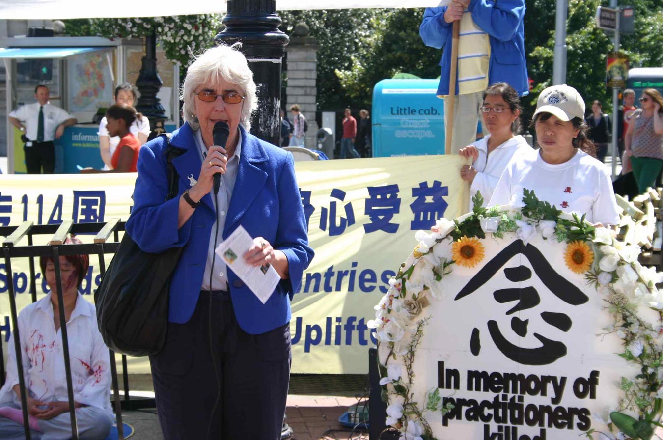 “我呼吁政府领导们,尤其是爱尔兰,向欧洲和世界各国政府施加压力,不要忽略或者假装看不见在中共统治下一直发生的、不可接受的对人权的侵犯和政治迫害,尤其是对法轮功的持续迫害是无法忍受的。政治自由和对人权的尊重,不能在单独经济利益的目标下被忽略或者搁置一边。”