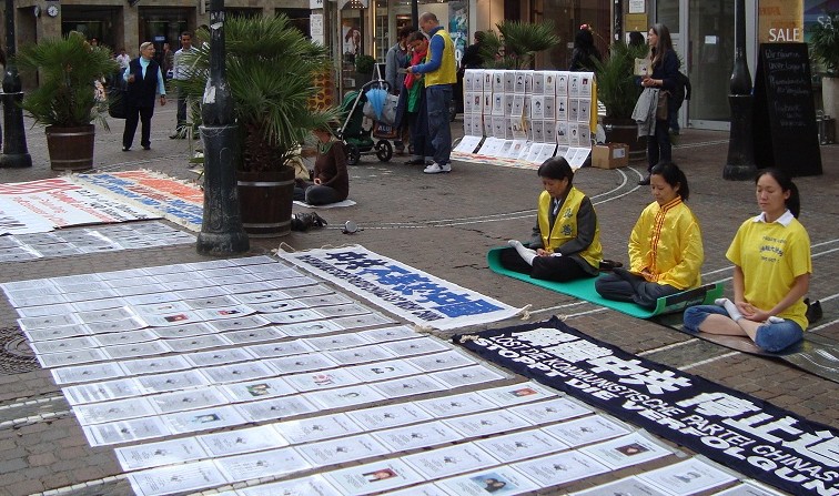 很多路人看到展板后主动的上前询问,并签名支持法轮功学员们的活动。签名桌前经常是排着队等待着签名。一天的活动下来,有不少是国外的游客,有瑞典,丹麦,西班牙,荷兰,德国,英国,瑞士,法国等。一群一群的孩子过来询问,他们能够帮助做什么,他们是否也能在签名本上写上自己的名字。很多人对学员讲说:“你们做了一件非常有价值的事情。”不少人告诉学员他们很高兴自己也能为此事出一份力。