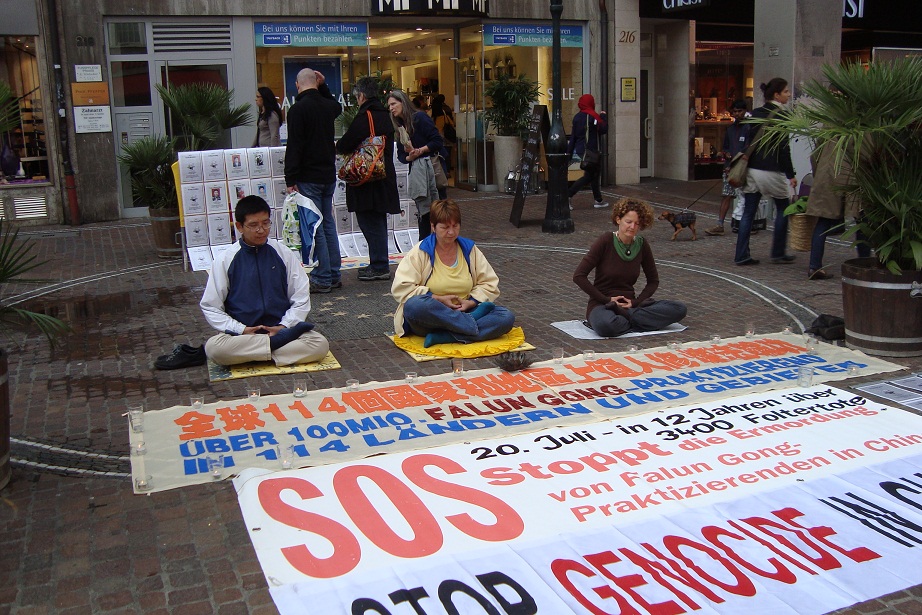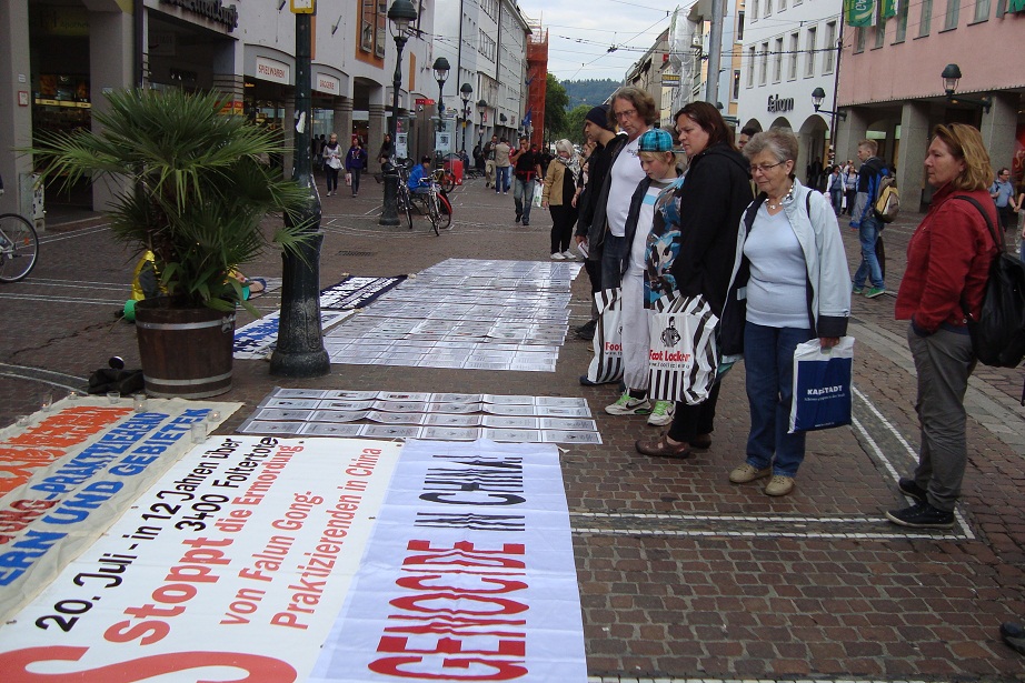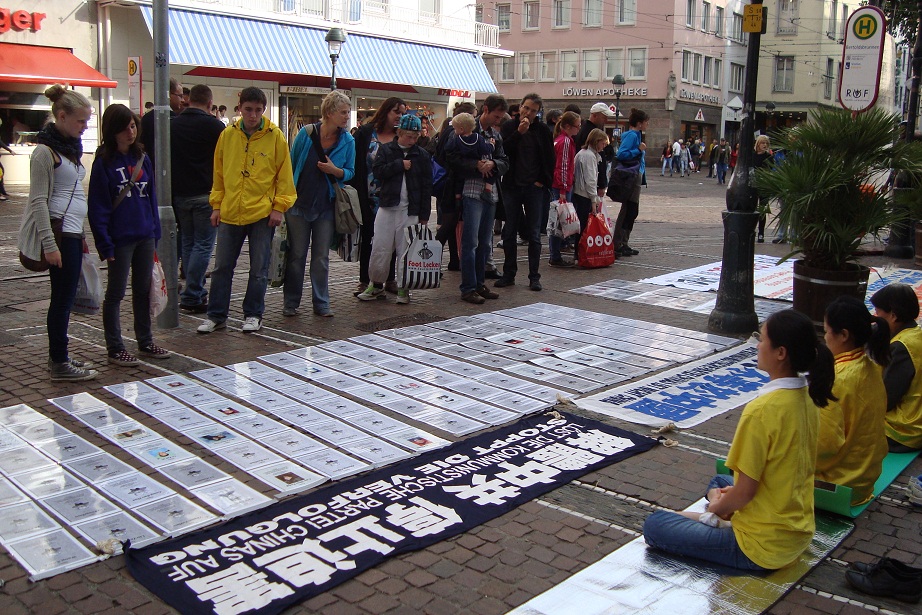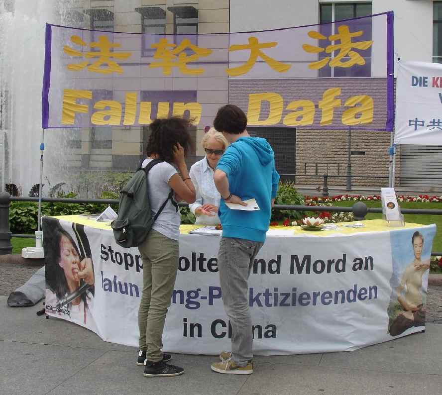 【明慧网二零一一年七月二十二日】(明慧记者吴思静德国柏林报道)“我在科隆就已经看到过这本法轮功学员被活体摘取器官的报告了,真是太恐怖了!应该让所有的人都知道这件事情。”一位德国中年男子一边说,一边指着一本小册子,封面上写着“Blutige Ernte”(血腥的摘取),这是两位加拿大法律界人士经过多方调查求证而写成的一份报告。这位德国中年男子从科隆来到柏林旅游,又看到了法轮功的摊位,他和同来的一位女士很快地在反对迫害法轮功的签名表上签了名。