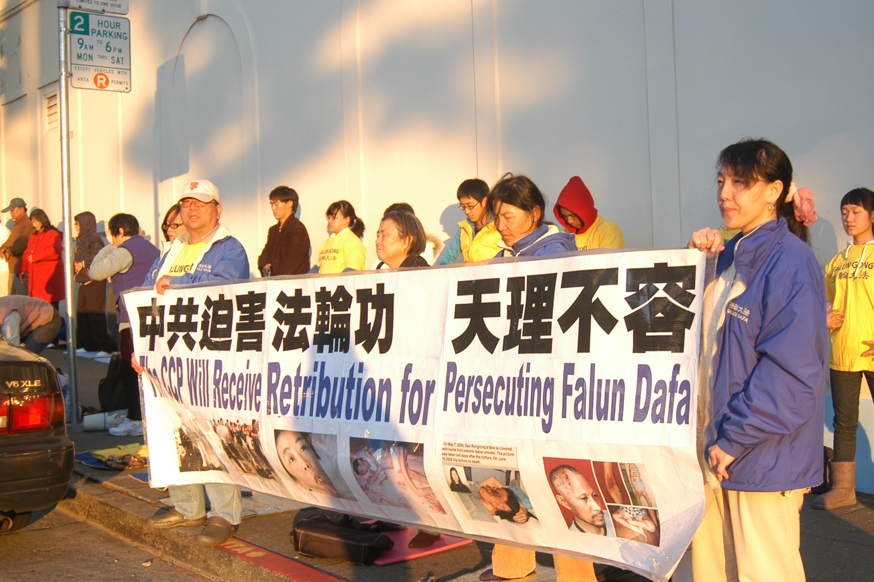 法轮功学员已经坚持十二年,通过讲真相的方式反迫害。张照进说:“十二年了,不管是天气炎热的夏天,还是冰天雪地的严冬,我们在这里和平的抗议中共迫害法轮功的暴行。”