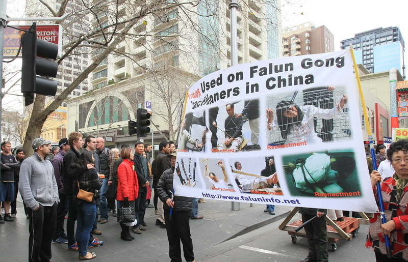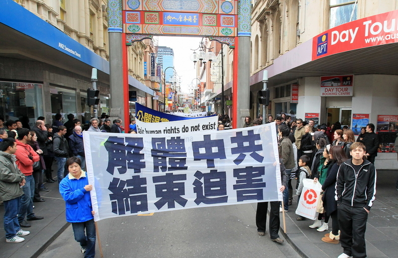 ![]() 7‧20反迫害12周年游行队伍经过墨尔本市中心唐人街 |