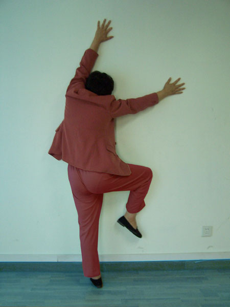 ![]() 身穿三色国旗装的法语教师雅兹瑞学炼法轮功 |