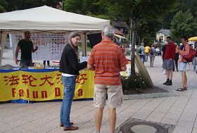 二零一一年八月十三日,法轮功学员在德国黑森林缇缇湖景区摆设信息台,向来自世界各国的游客讲真相,传播法轮大法的美好,揭露中共对法轮功长达十二年的残酷迫害。