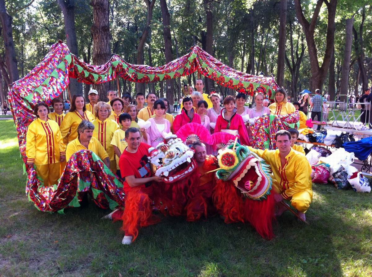 下午四点,法轮功学员的游行队伍走上广场,“法轮大法好”的横幅后面是穿着唐朝服饰的学员们,还有“中国龙”、“中国狮”。一路上学员们分发给路人各类法轮功真相资料。游行受到沿途民众的欢迎和赞赏。