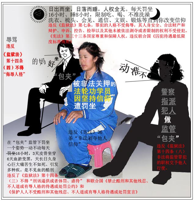 三月二十二日,监狱迫使所有的法轮功学员都得“码小凳”,不能动。在车间进行生产的刑事犯被调回监室参与迫害法轮功学员。