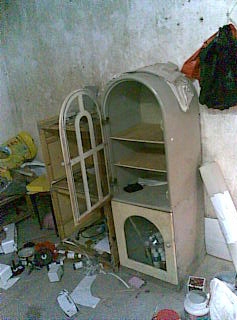 ![]() 刘绍仔家一房间被恶警洗劫一空 | ![]() 刘绍仔家被恶警撕毁的真相对联 | ![]() 刘绍仔家被恶警被恶警搜过的柜子 |