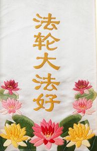 手绣:法轮大法好十字绣:真善忍大陆大法弟子手绘荷花剪纸国画《除恶》绘画