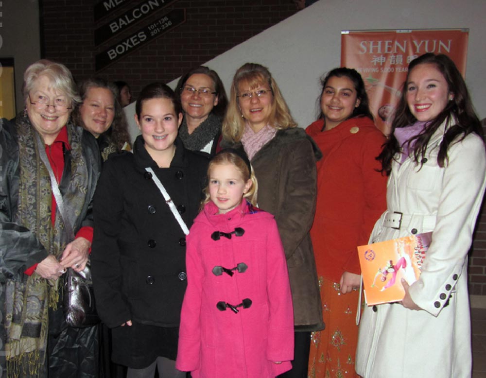 神韵对剑桥舞蹈学校的师生来说是一个热切的期盼。校长黛安.珑(Diane Long)女士从事芭蕾教学和编舞已有二十六年,在当地颇有声望。自从带学生参加剑桥购物中心圣诞演出了结了神韵的演出信息,黛安便被神韵的中国古典舞之美深深震撼,开始组织学生和家长集体观摩神韵。今天十九位师生和家长终于得偿心愿。