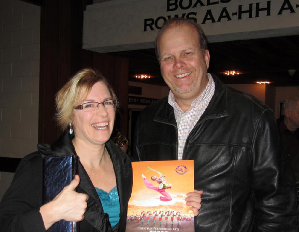 在银行工作的凯文和从事人事培训的戴碧是在美国长大的中国孩子,今晚是凯文送给戴碧的一个惊喜。凯文表示,今晚的演出,特别是美猴王的故事,使他们想起了自己的童年。演出中展示的道义,是他们血脉中的一部份,几千年一直承传着。戴碧特别喜欢舞蹈中的长袖飘飘,《荷叶舞》是她的上半场中的最爱。美丽的中国舞唤醒了她小时学习中国舞的记忆,不禁欢喜的落泪。戴碧表示生长在异国的情调中,今晚的演出真的把他们和自己文化的根联系在一起,感受到自己的传统文化,这一切是无价的。