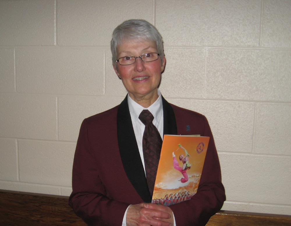 埃莉诺(Eleanor Buchanan)在广场中央剧院做义务领位员已十四年。看过无数演出的她,今天看神韵仍非常感动。因为神韵对每个人表达出的真相和善意令她印象尤为深刻。即使在场外,看不到天幕上的歌词,听不懂演唱的中文歌词,她还是非常喜爱神韵的歌曲,因为她能体会到歌唱家要表达的意境。
