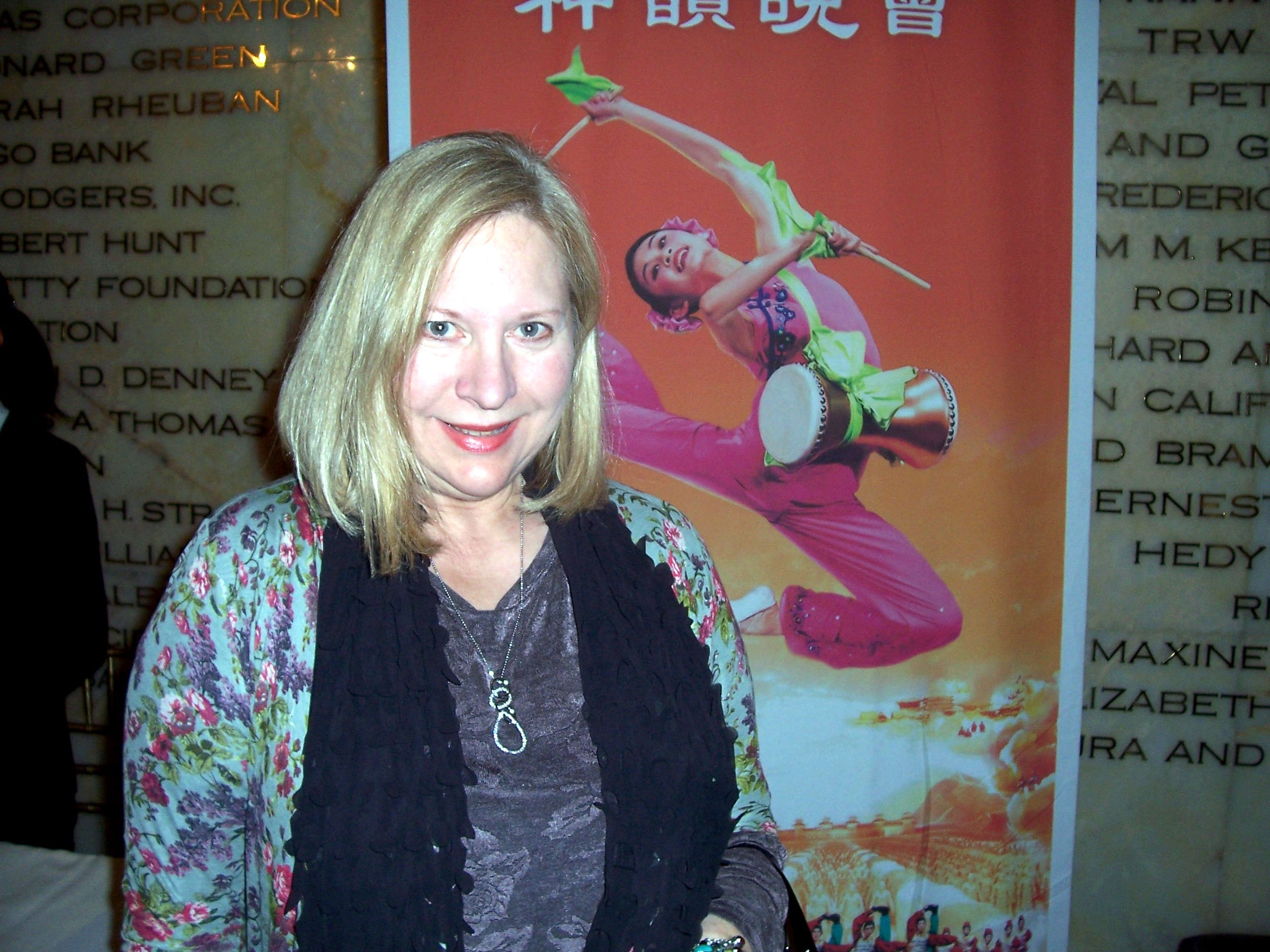 好莱坞制片人罗宾•瑞智莉曾在美国国会担任过国会议员的通讯总监。去年看过“神韵”后,留下深刻印象。一月十四日下午,在洛杉矶音乐中心多萝茜•钱德勒剧院,她和朋友再次观看了神韵纽约艺术团的演出。她表示:“我们都被神韵深深感动。你能感受到神在舞中。能看到神韵,那是我们的幸运。”