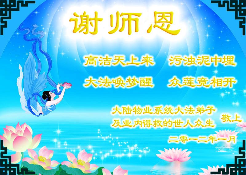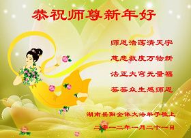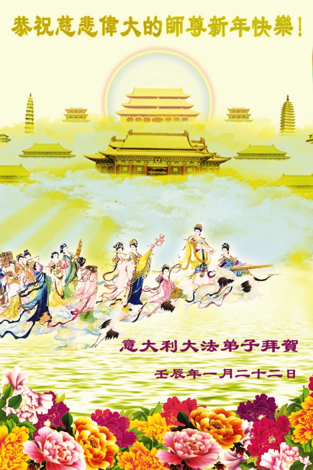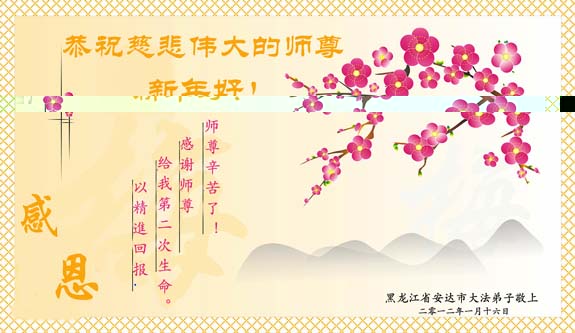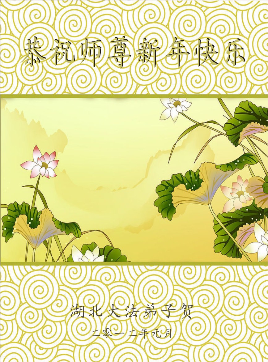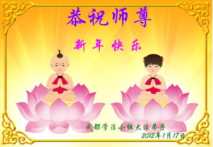 【明慧网二零一二年一月二十三日】壬辰年(二零一二年)新年之际,中国大陆和海外的大法弟子纷纷寄来贺卡贺词,恭祝慈悲伟大的师尊新年快乐,感谢师尊的慈悲救度。以下是欧洲大法弟子的贺词贺卡。