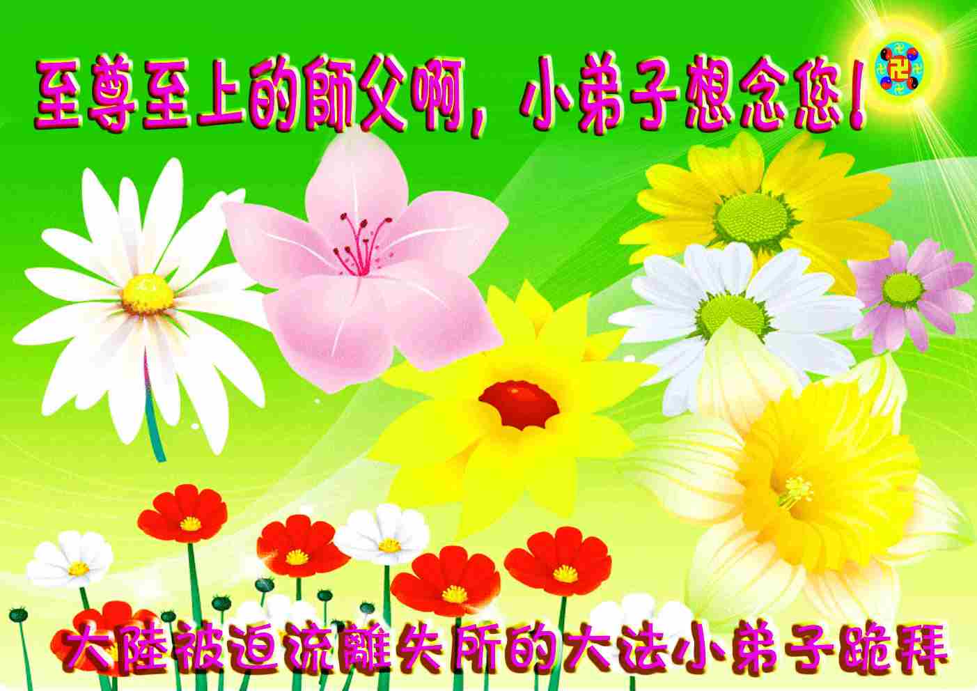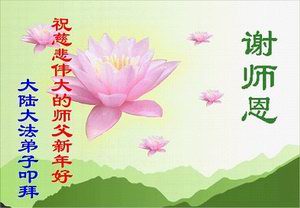在这新年之际,弟子感谢慈悲伟大的师尊救度之浩荡洪恩!感恩师尊传给了我们宇宙大法,给了我们一条返本归真的通天之路。在新的一年中,我们一定把助师正法的神圣使命牢记在心,珍惜机缘,认认真真学好法,遵照法去做,实实在在修好自己,从本质上改变和提高自己,才能够多救人,用正念正行来回报师尊给予我们的一切,完成誓愿与师父回家!