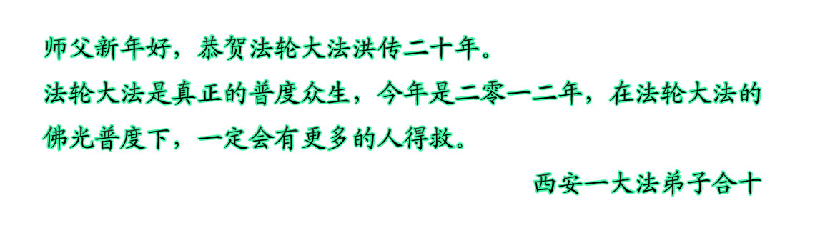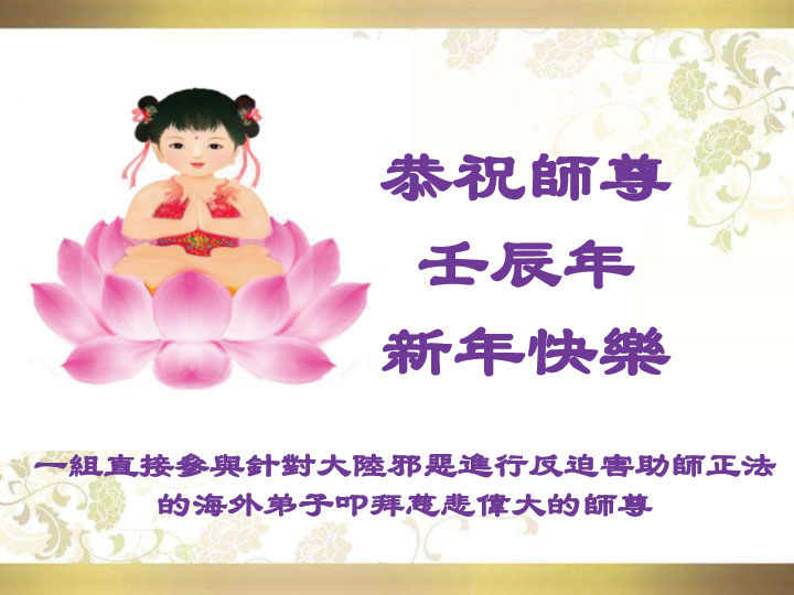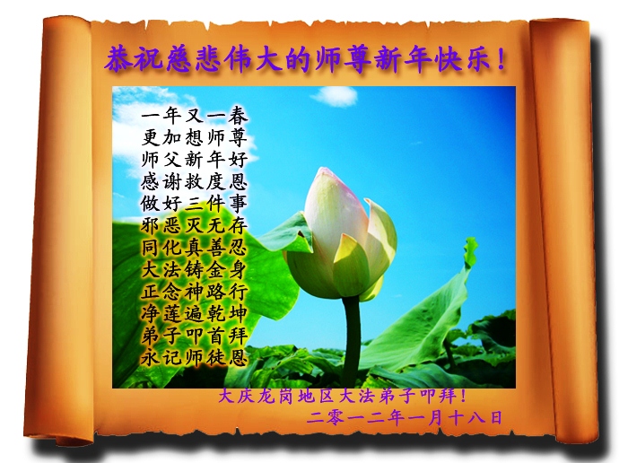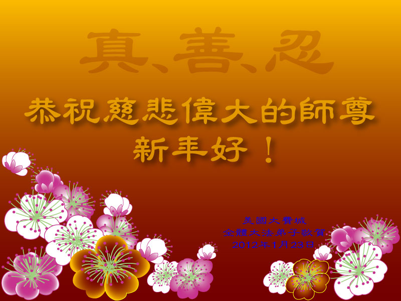 <英文版: http://www.clearwisdom.net/html/articles/2012/1/24/130922.html>美洲大法弟子恭祝师尊新年好