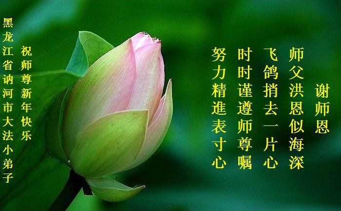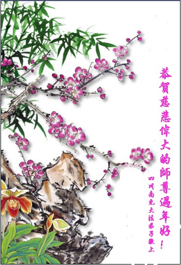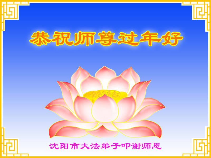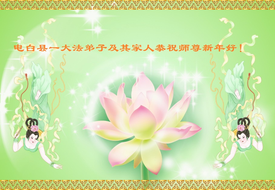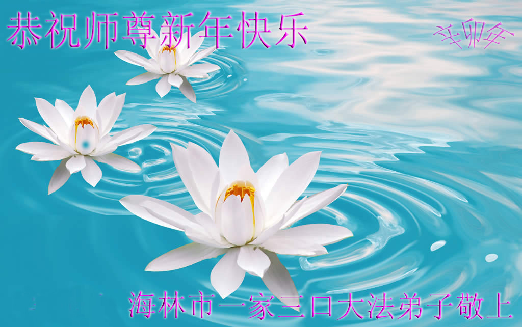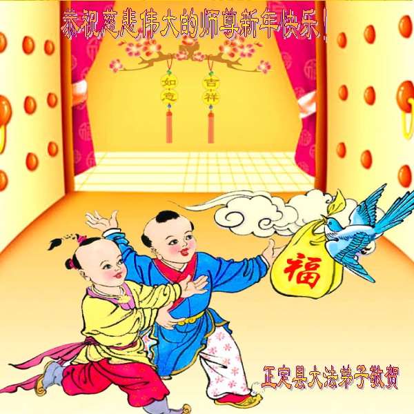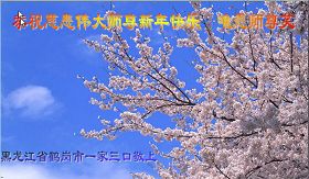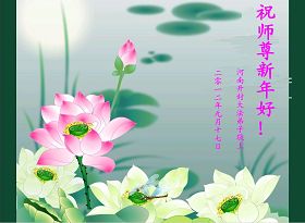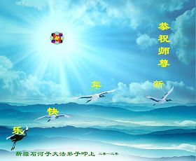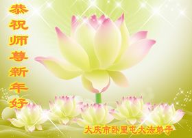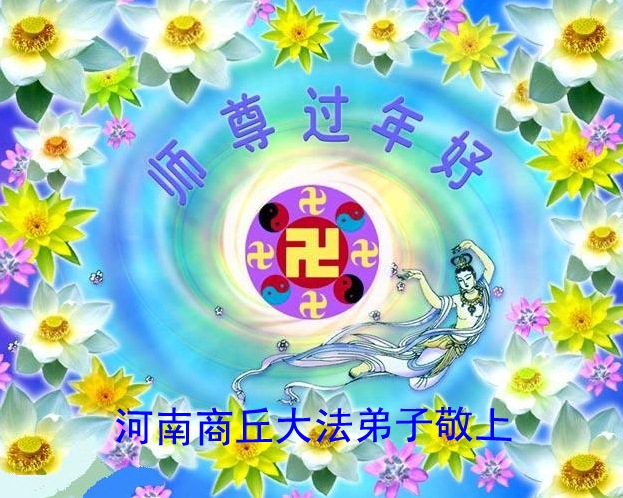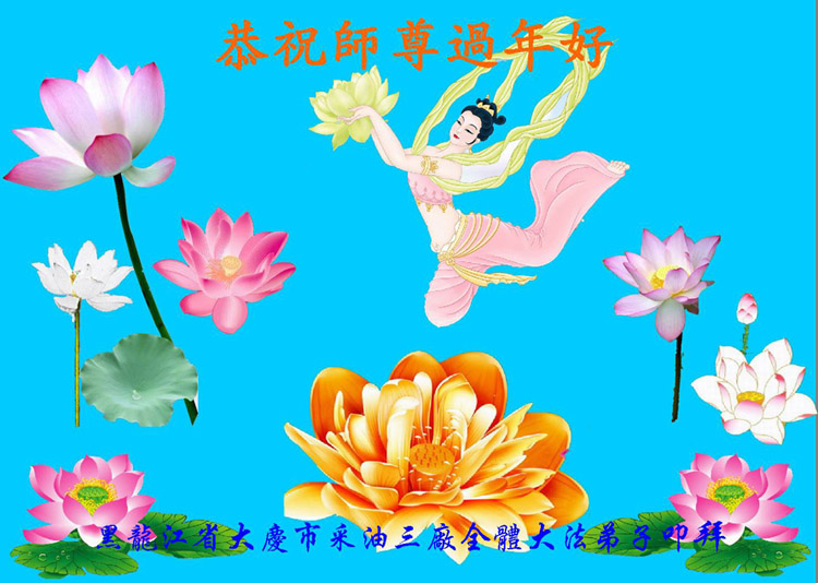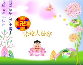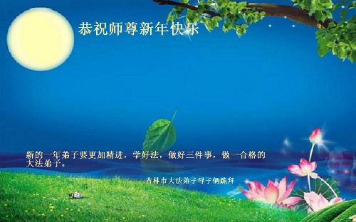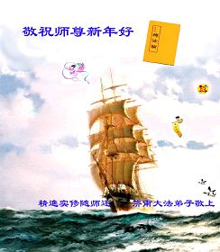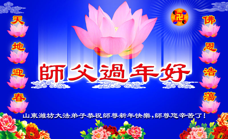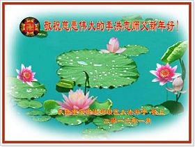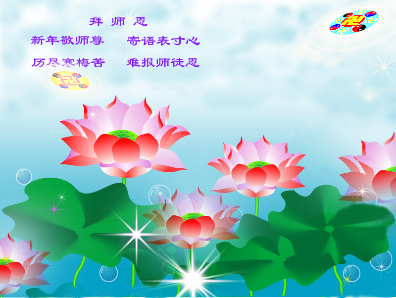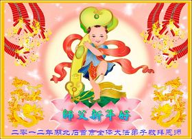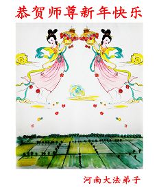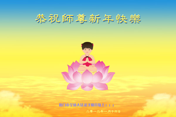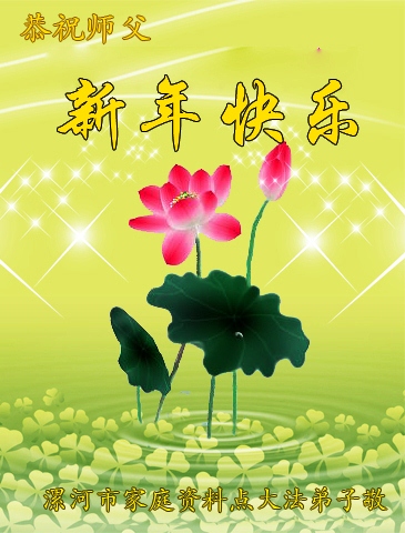 尊敬的师父好!师父辛苦了!您从地狱把弟子捞起洗净,给予弟子的,我千言万语都表达不尽对您的感恩。我在修炼的路上坎坎坷坷走到今天,我深知没有您的呵护,我就没有今天。我一定坚修大法到底跟师父一起回家,请师父放心。在新的一年里我一定勇猛精進,做好三件事。再次祝师父新年好!