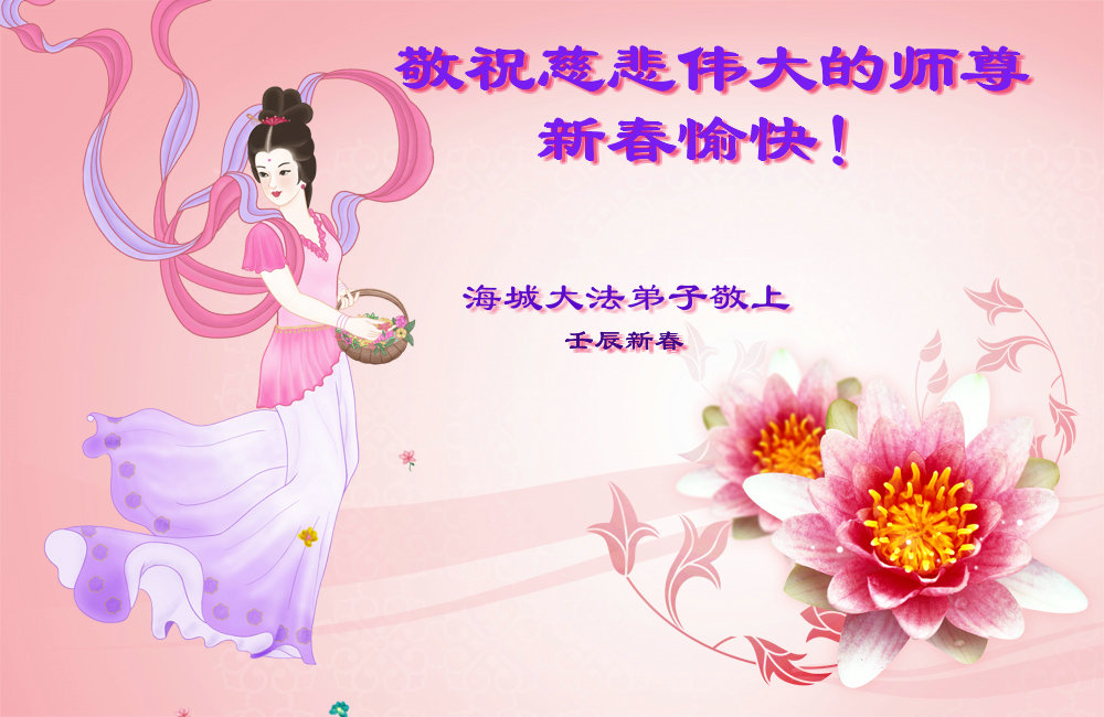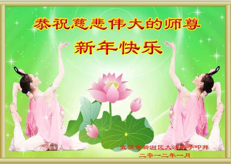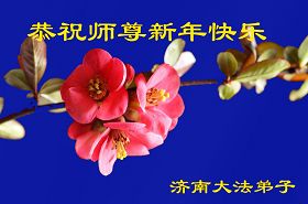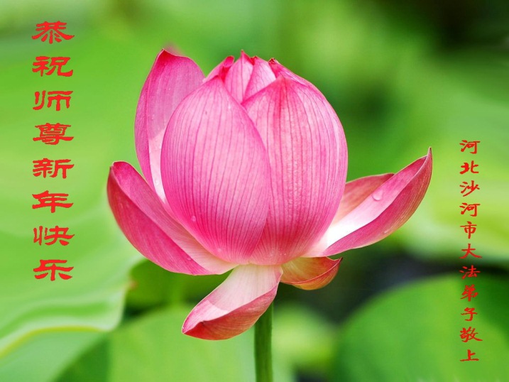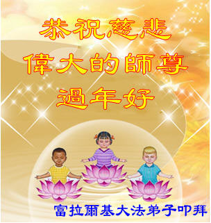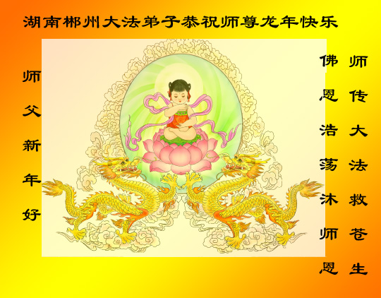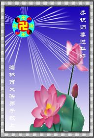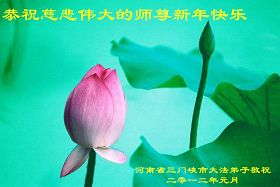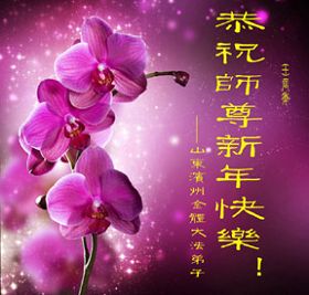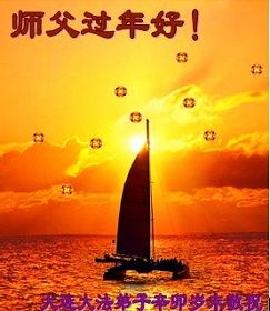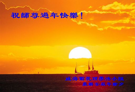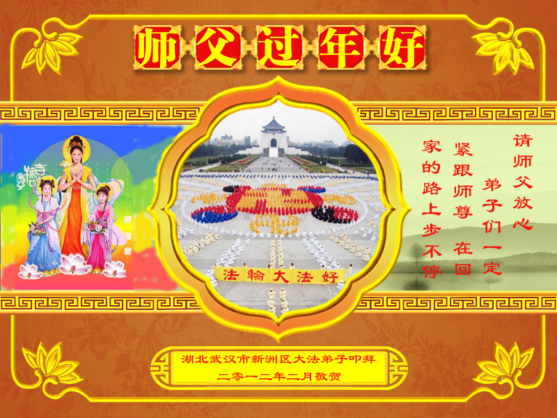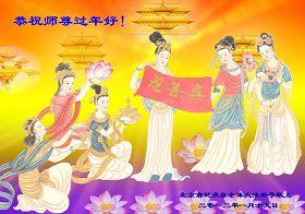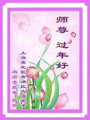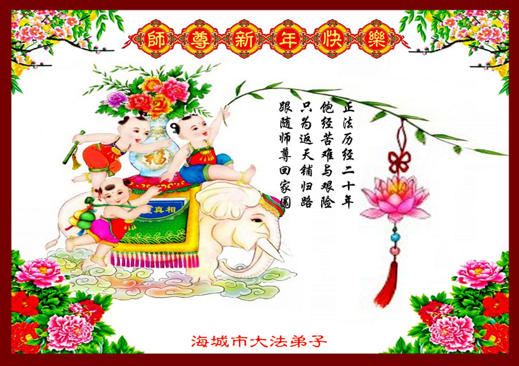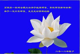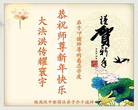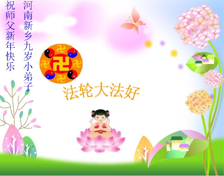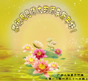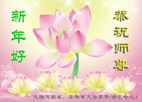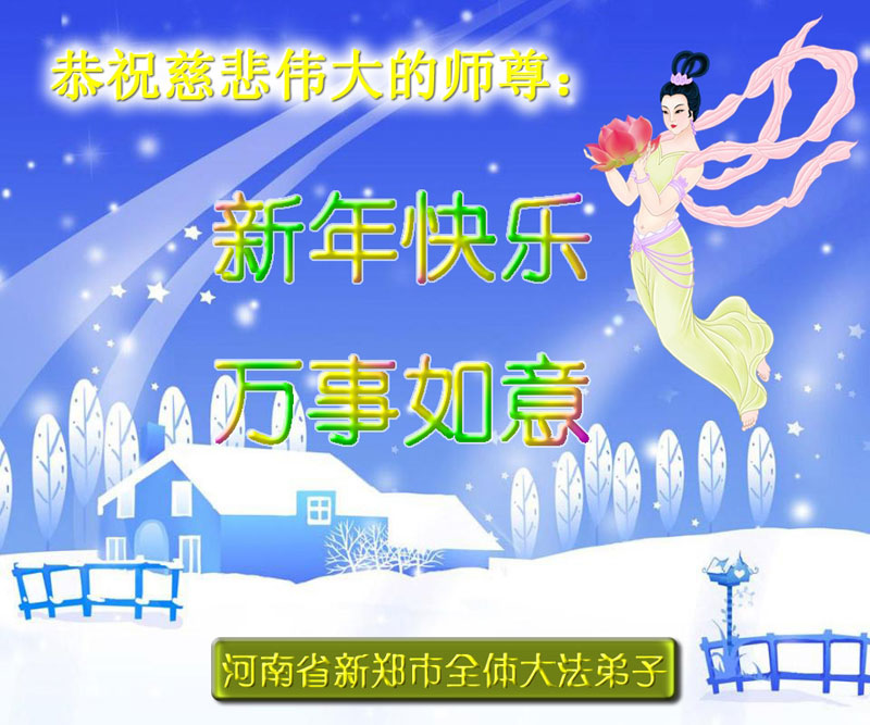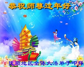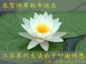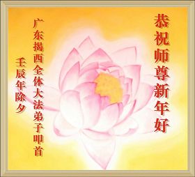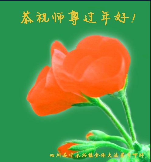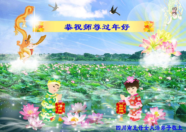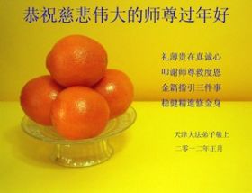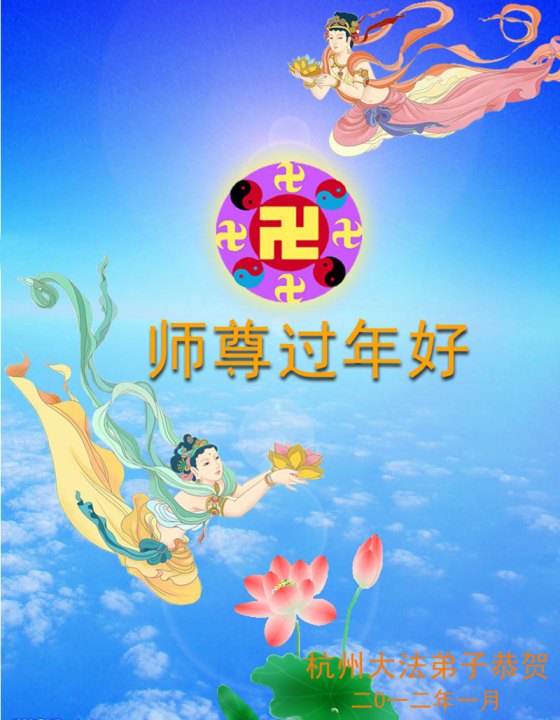 尊敬的师父好!师父辛苦了!您从地狱把弟子捞起洗净,给予弟子的,我千言万语都表达不尽对您的感恩。我在修炼的路上坎坎坷坷走到今天,我深知没有您的呵护,我就没有今天。我一定坚修大法到底跟师父一起回家,请师父放心。在新的一年里我一定勇猛精進,做好三件事。再次祝师父新年好!