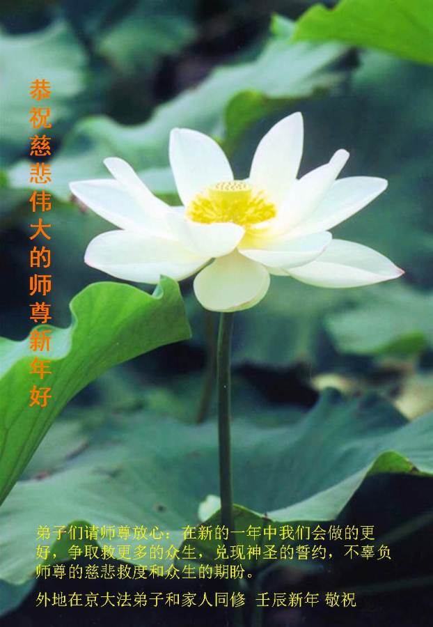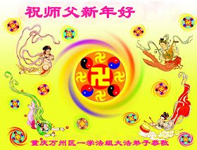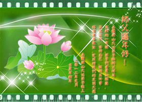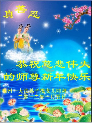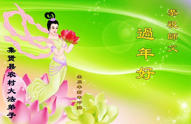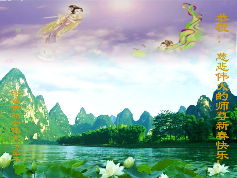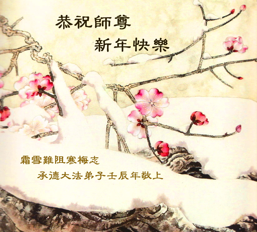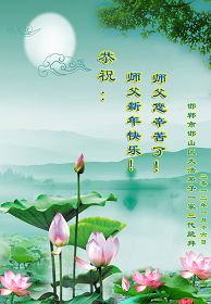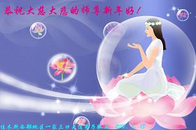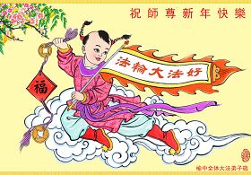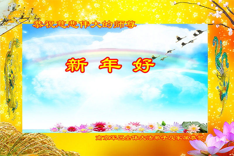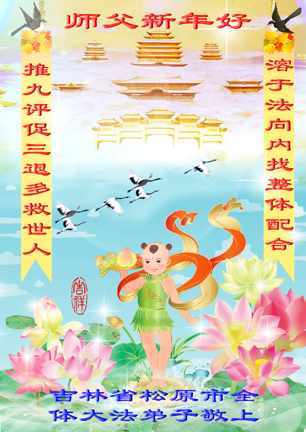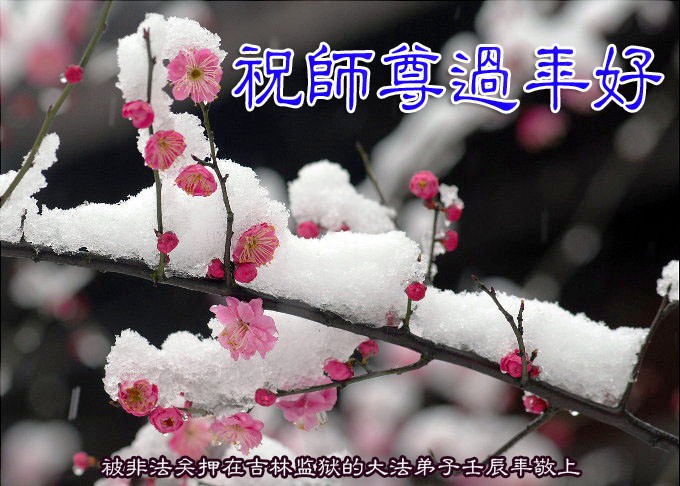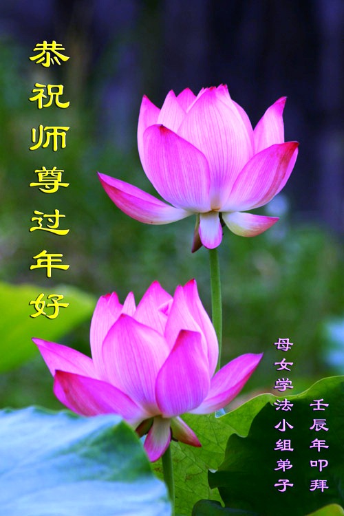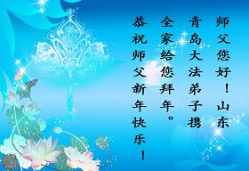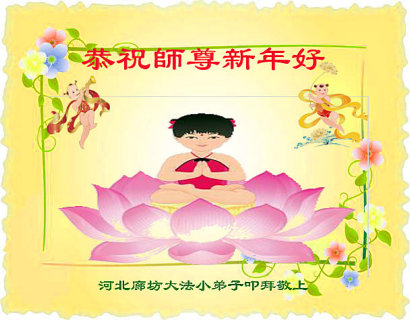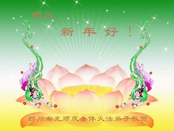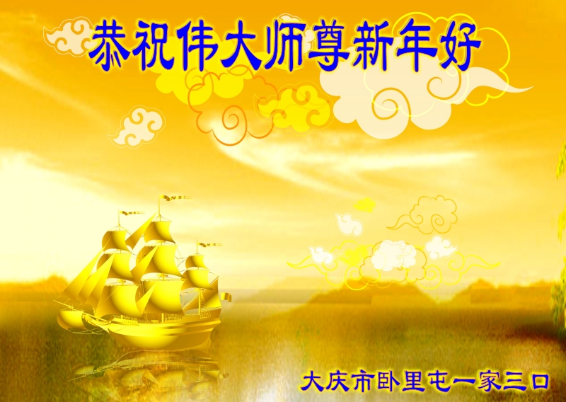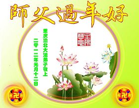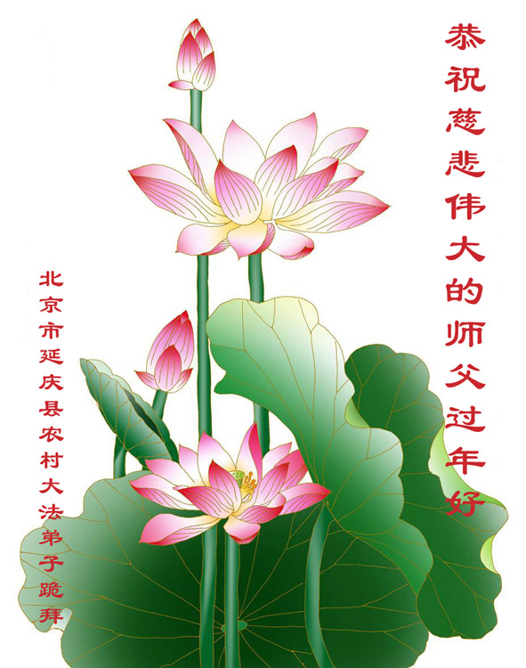 尊敬的师父好!师父辛苦了!您从地狱把弟子捞起洗净,给予弟子的,我千言万语都表达不尽对您的感恩。我在修炼的路上坎坎坷坷走到今天,我深知没有您的呵护,我就没有今天。我一定坚修大法到底跟师父一起回家,请师父放心。在新的一年里我一定勇猛精進,做好三件事。再次祝师父新年好!