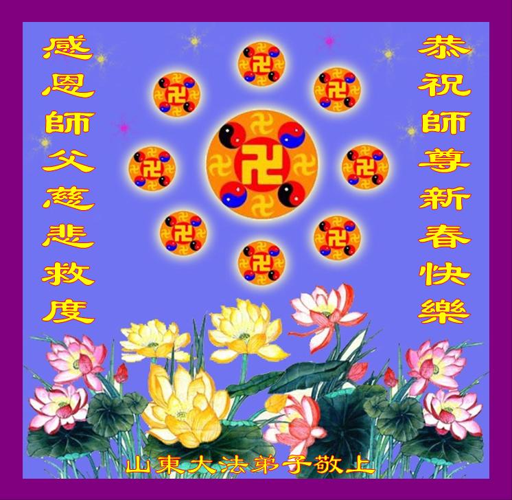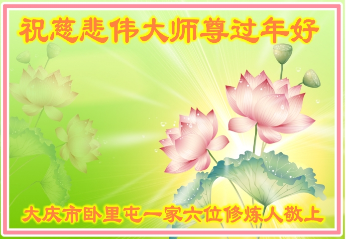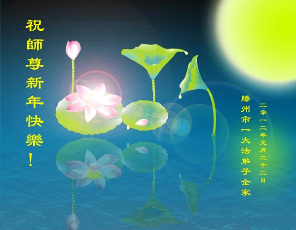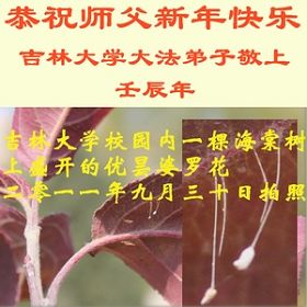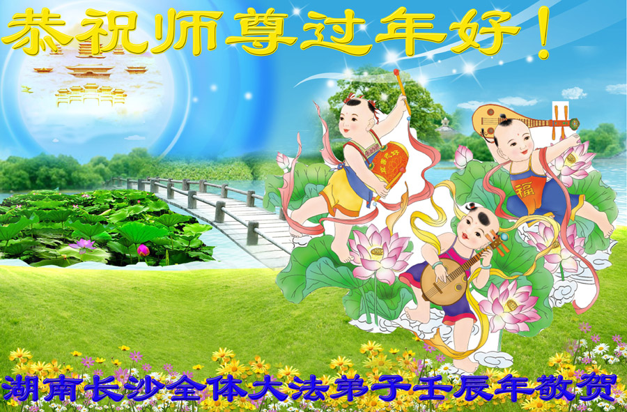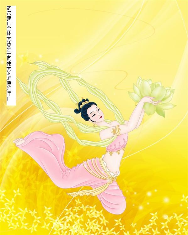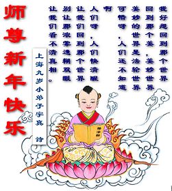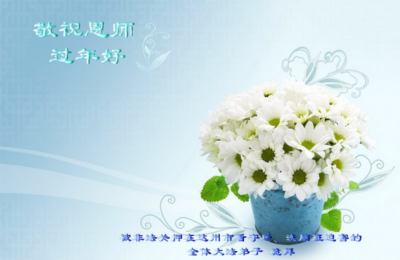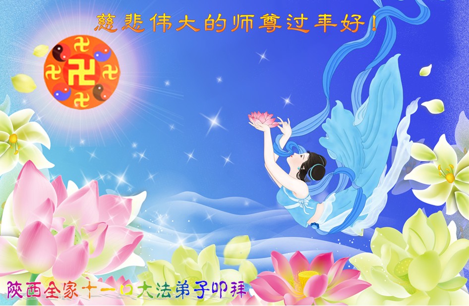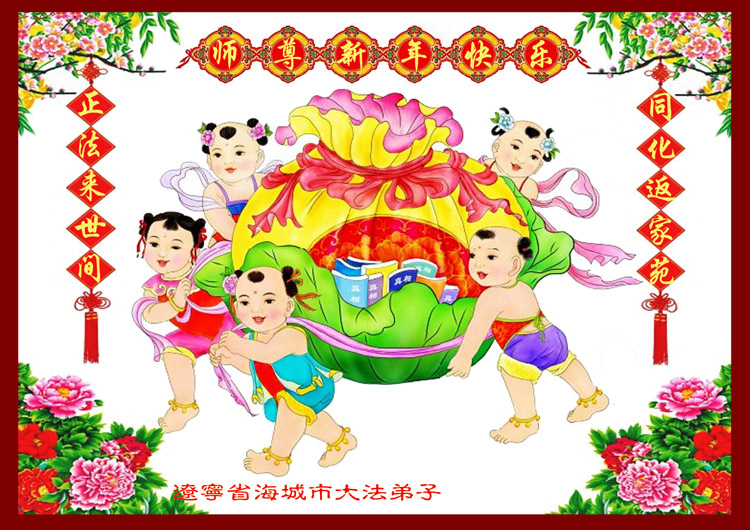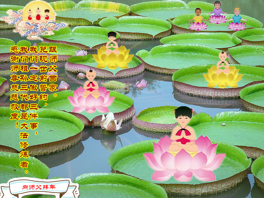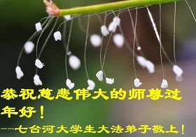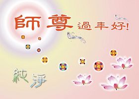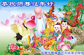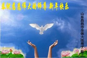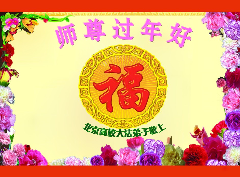 尊敬的师父好!师父辛苦了!您从地狱把弟子捞起洗净,给予弟子的,我千言万语都表达不尽对您的感恩。我在修炼的路上坎坎坷坷走到今天,我深知没有您的呵护,我就没有今天。我一定坚修大法到底跟师父一起回家,请师父放心。在新的一年里我一定勇猛精進,做好三件事。再次祝师父新年好!