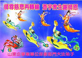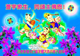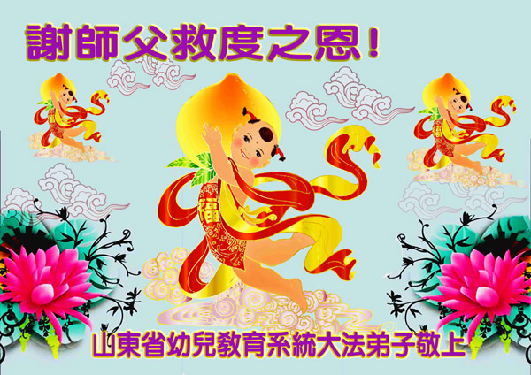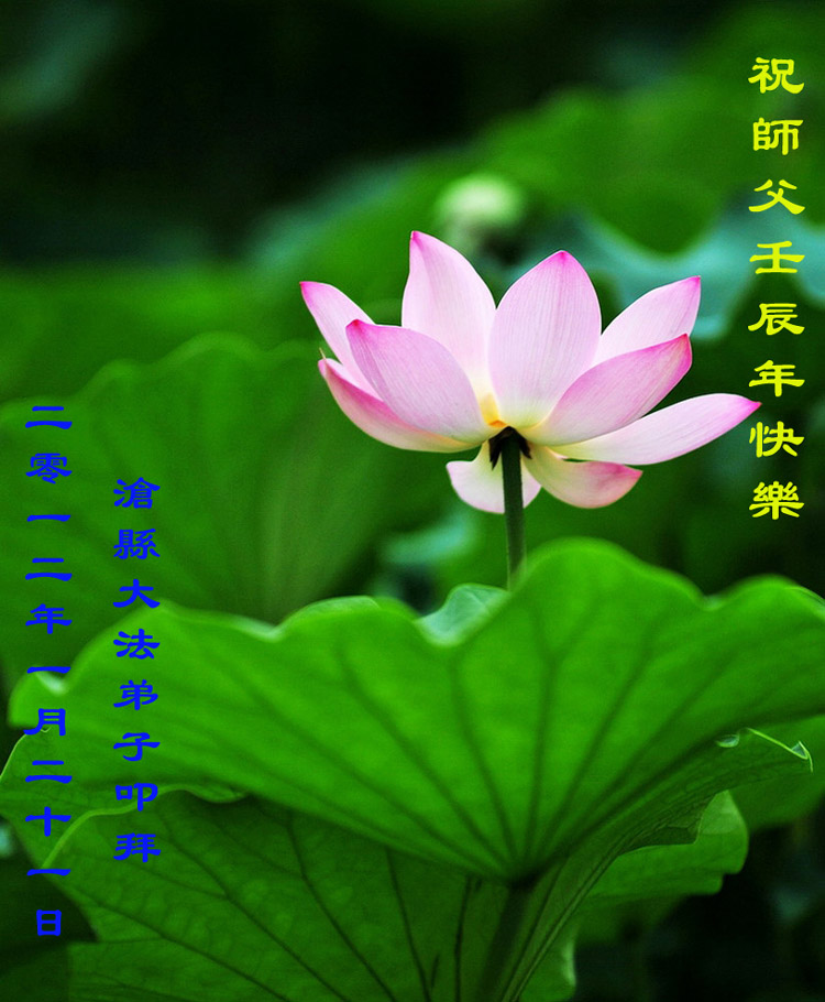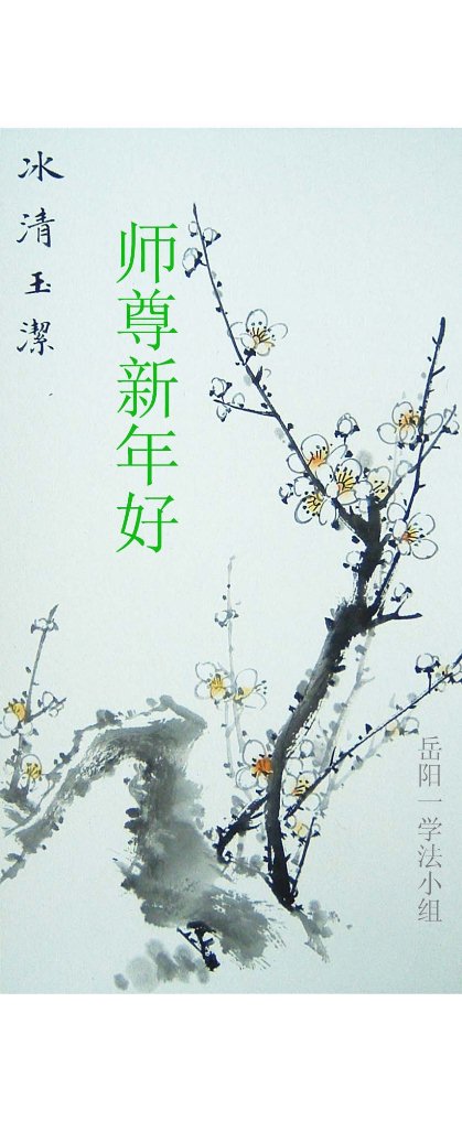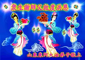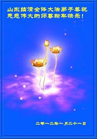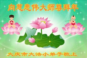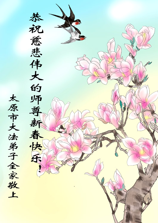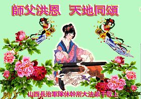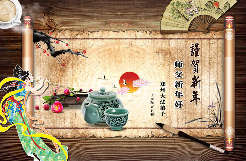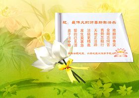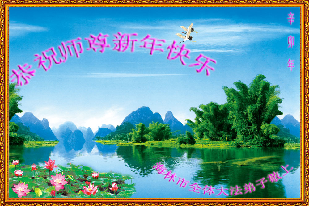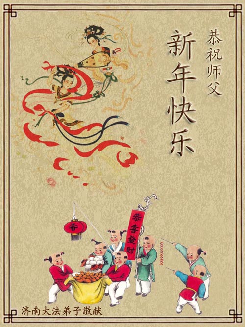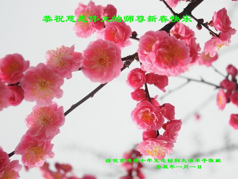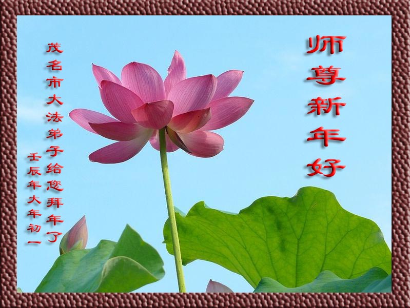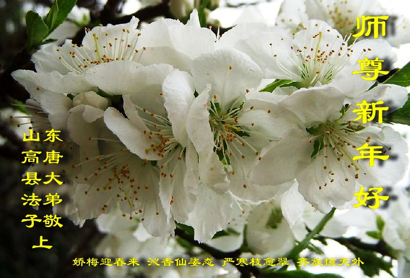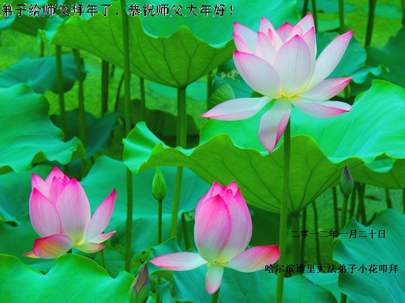 尊敬的师父好!师父辛苦了!您从地狱把弟子捞起洗净,给予弟子的,我千言万语都表达不尽对您的感恩。我在修炼的路上坎坎坷坷走到今天,我深知没有您的呵护,我就没有今天。我一定坚修大法到底跟师父一起回家,请师父放心。在新的一年里我一定勇猛精進,做好三件事。再次祝师父新年好!