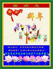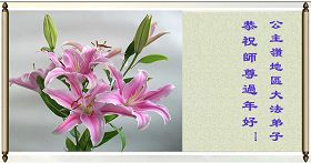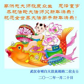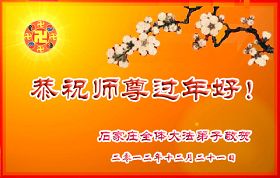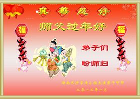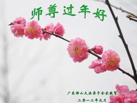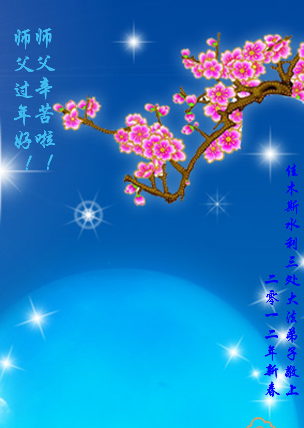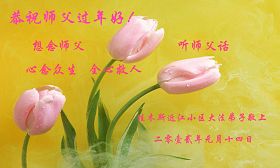 明慧同修好,在新年开始之际请你们替我和我母亲(同修)向师尊拜年。我只想真诚的对师尊说:“师父过年好”。谢谢!