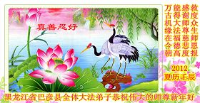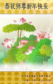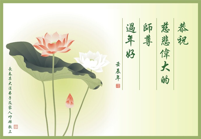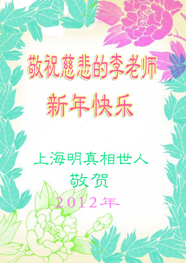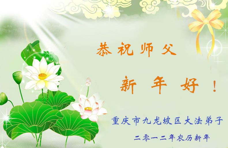 【明慧网二零一二年一月二十四日】从二零零一年开始,世界各地的大法弟子纷纷在中国新年之际,将发自内心的节日贺词、自制的贺卡、诗歌等寄给明慧网,向慈悲无私的师尊李洪志先生恭祝新年快乐。这里收集的是壬辰年(二零一二年)新年大陆大法弟子发来的部份贺词贺卡(179条)。