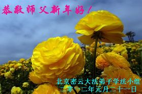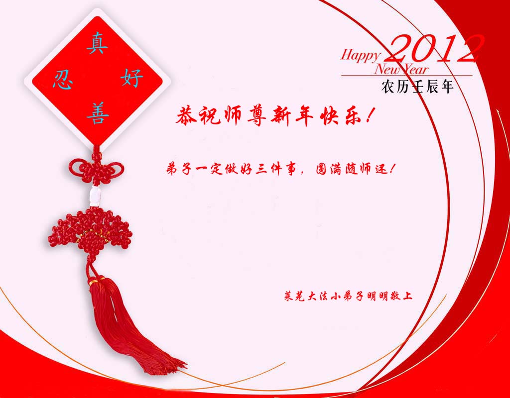慈悲伟大的师父:您好!2012年转眼就到,弟子身感时间的飞逝和责任的重大。请师父放心,弟子一定会更加努力,新的一年里,唯愿师尊笑。
