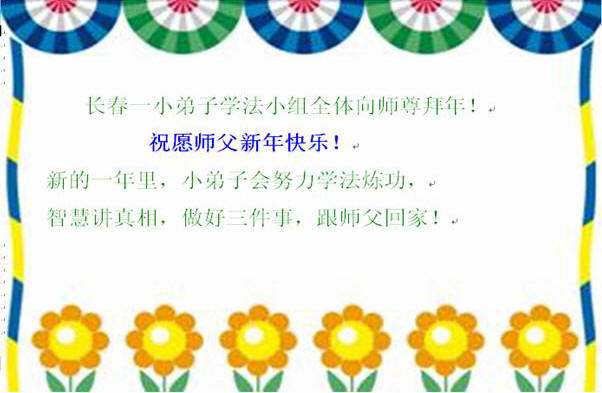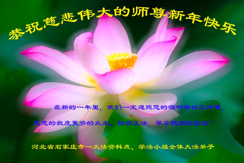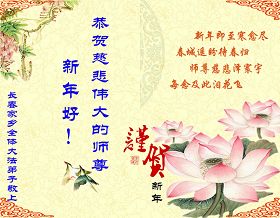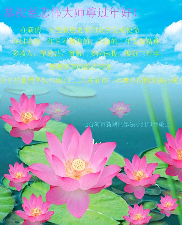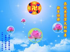 我代表我们学法小组的全体大法弟子:祝慈悲伟大的师父,新年快乐,一切如意。感谢师父救度,弟子一定精進做好三件事,让师父少一些担心多一些欣慰。