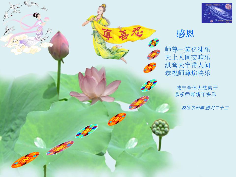 在这里弟子代表家人及身边相信大法的众生向伟大的师尊问一声:"新年好!您辛苦了!"