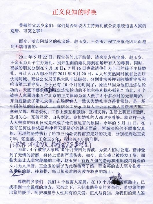 声明人:郑文红 李崇惠 吴鼎和 殷桂花 丁雪妹 狄会斌 胡宝军 杜保琴 姜亚芬 张培英 曹永 王俊生 辛学林 王晓云 夏冬香 李鸿舒 孙春香 于大海 王兰英 胡敦毅 彭辉生 赵琨于 杨景舜 丌亚莉 李树莲 李凯 马长青 赵淑琴 吕凤云 王志刚 何贞秀 杨丕昌 于珊 李东华 高敬芳 王德秀 黄锦英 段顺珍 王勇 王清香 王夫楠 杨云清 金风